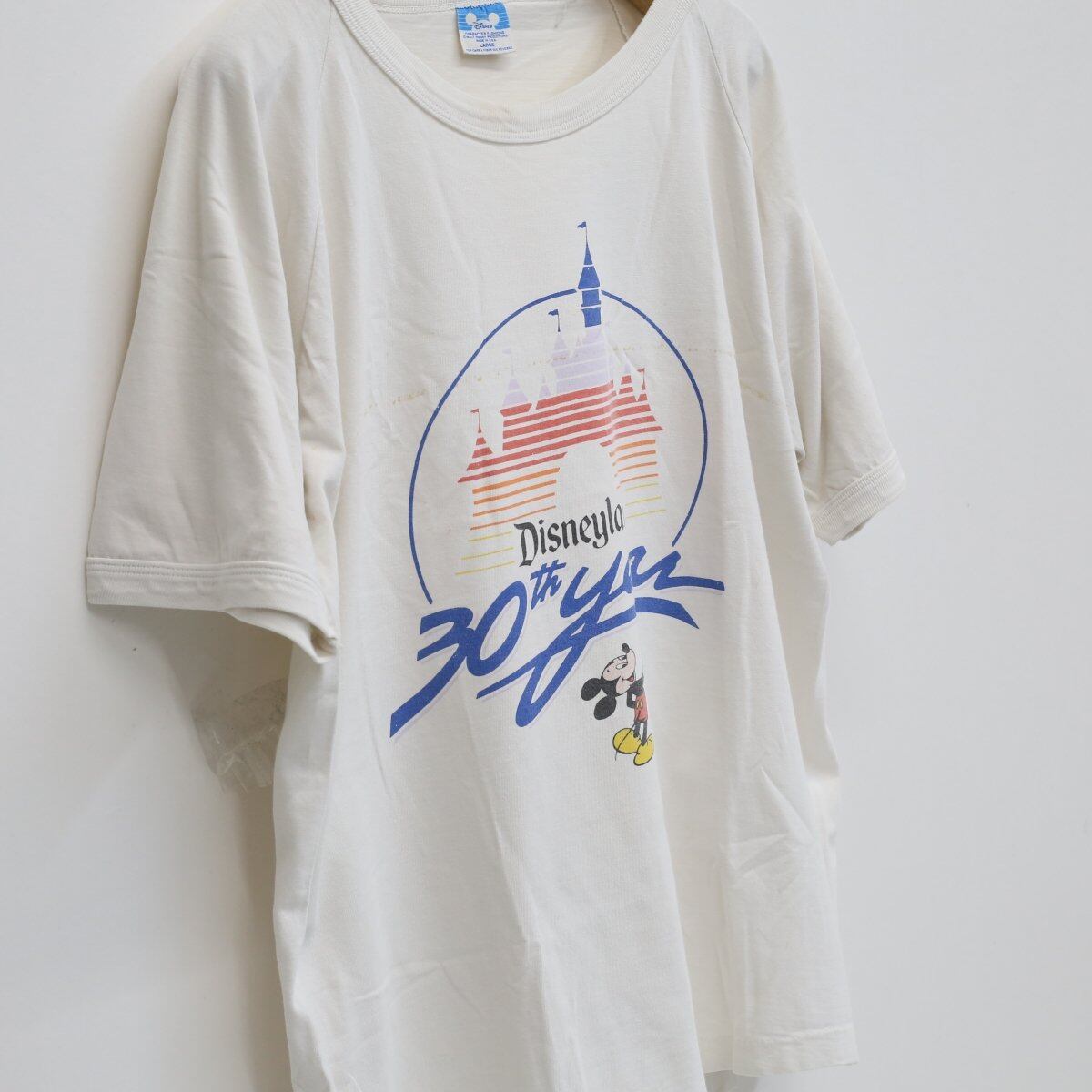 Disney ディズニー 80 〜 90年代 アメリカ製 30th 周年 記念 シンデレラ城 ミッキーマウス 前面 プリント Tシャツ ホワイト L 半袖