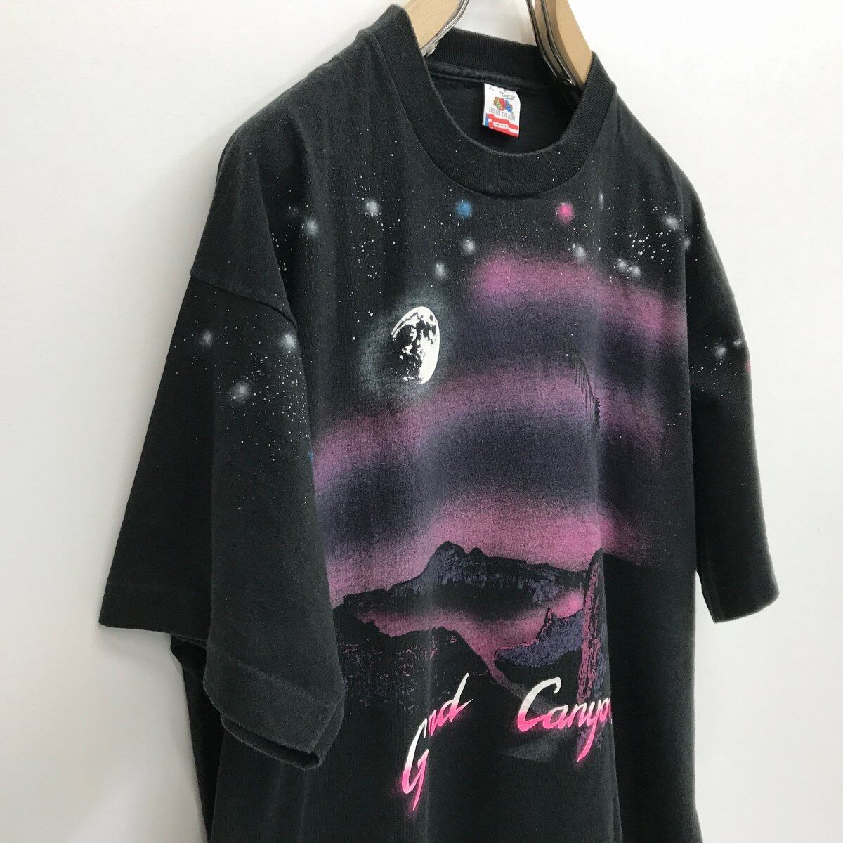 フルーツオブザルーム 90年代 USA製 GRAND CANYON ホリゾンタルパターン 両面肩プリント ブラック XL 半袖 タグ