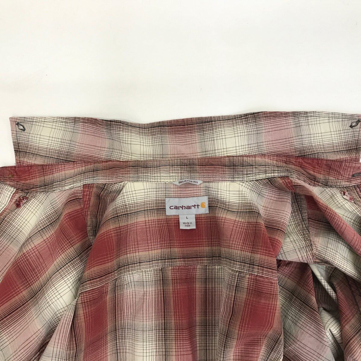 カーハート RELAXED FIT ボタンダウンシャツ シャドーチェック風 えんじ XL 半袖 タグ