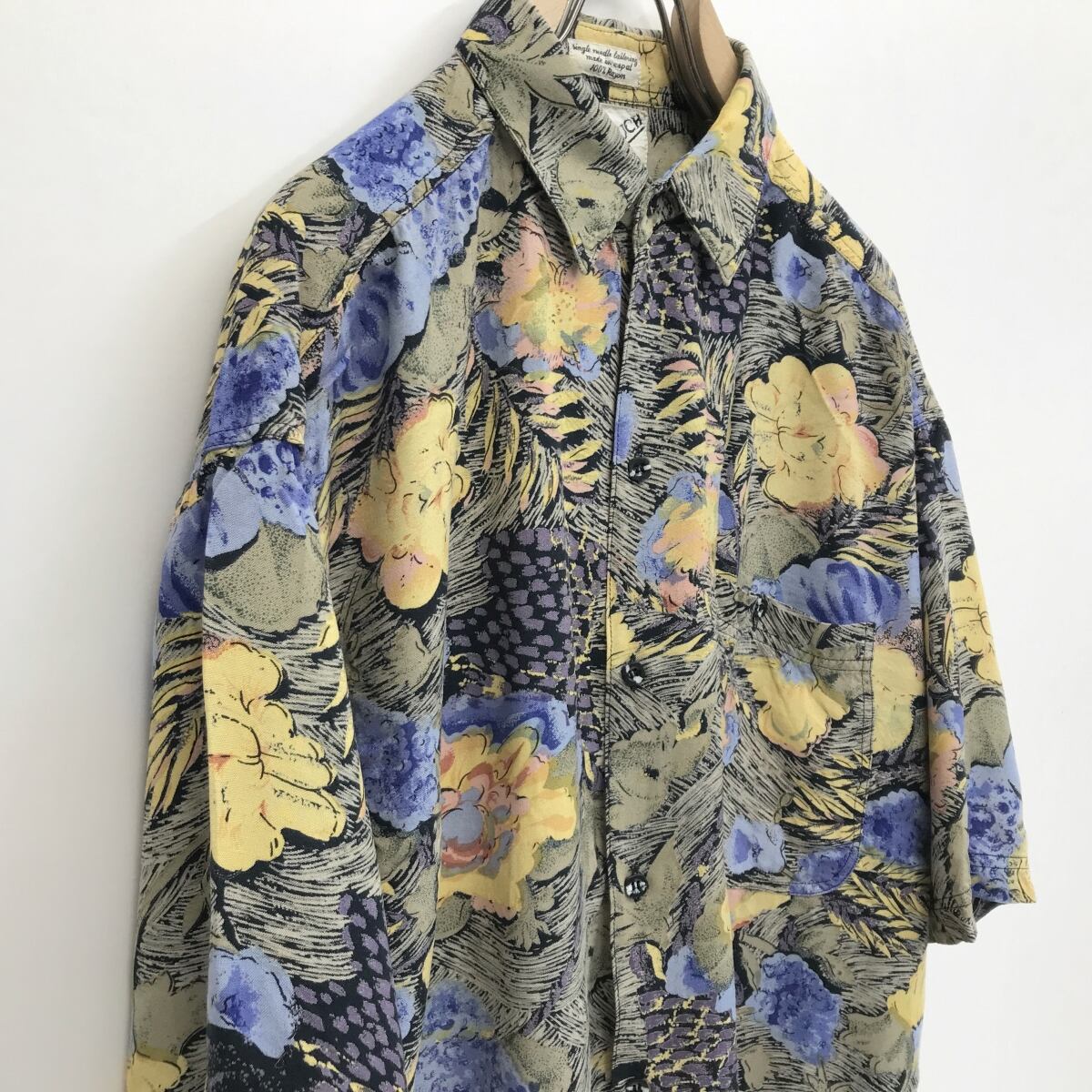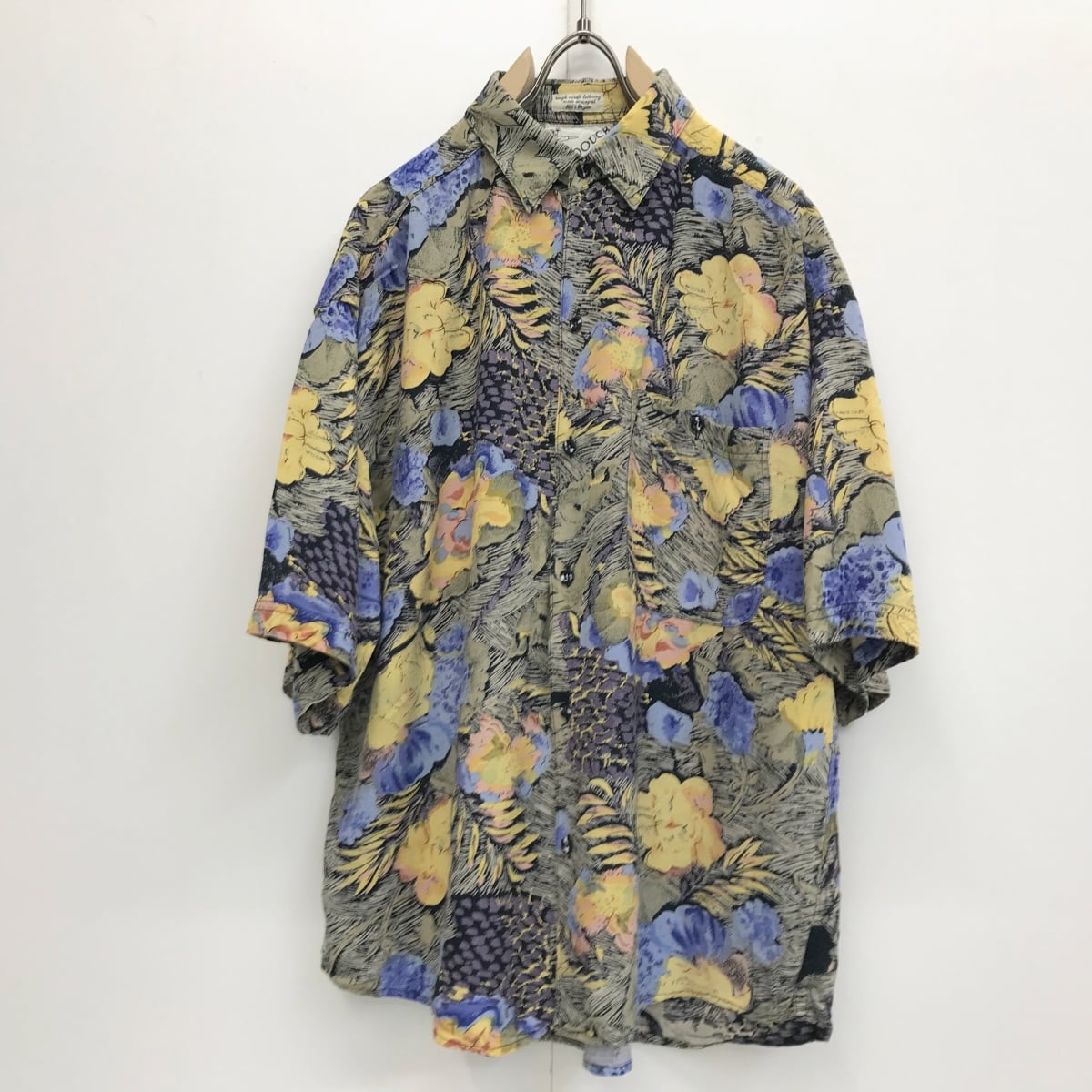 グーチ 80年代 ボタニカル 絵画風 濃い柄 花柄 総柄 レーヨンシャツ XL 半袖 タグ