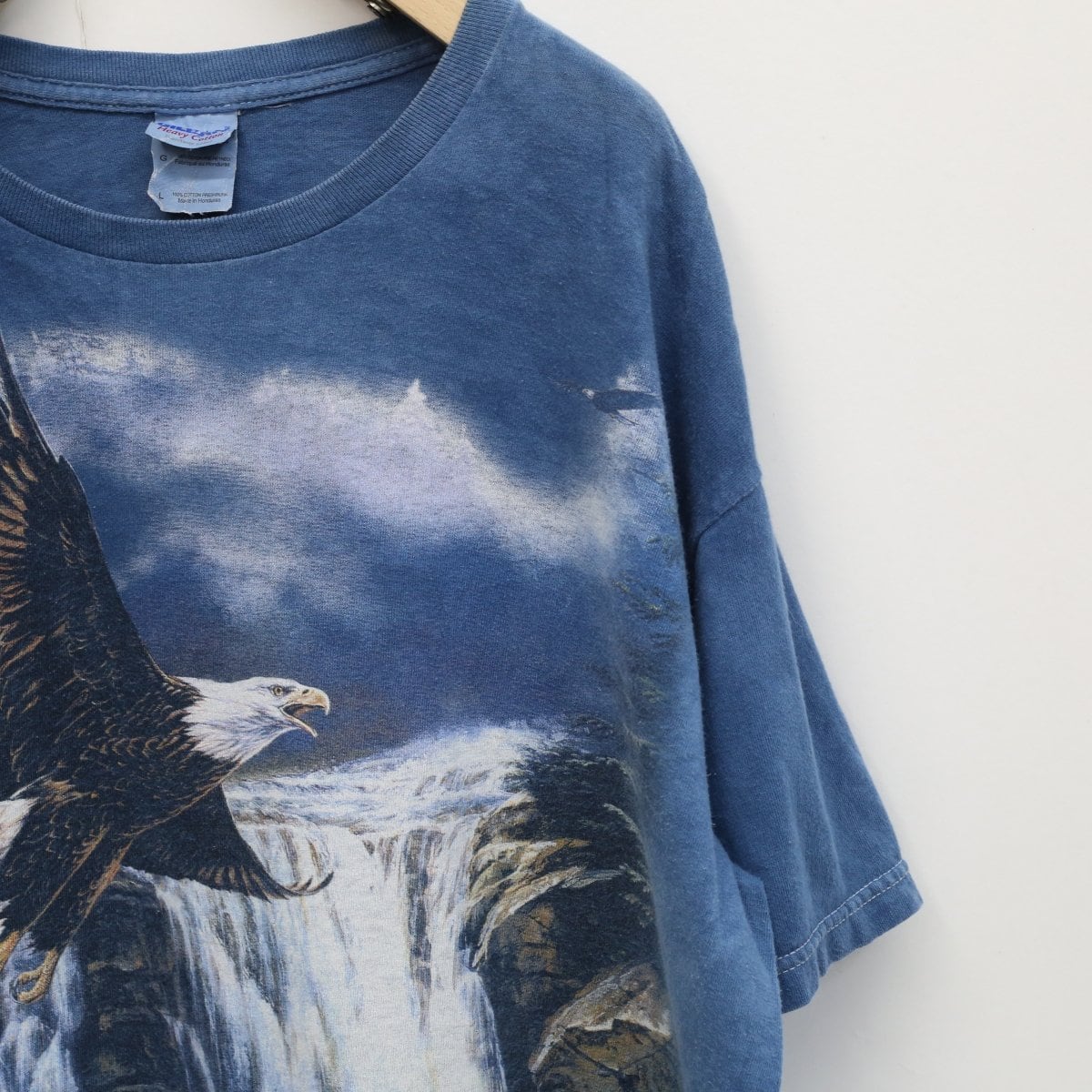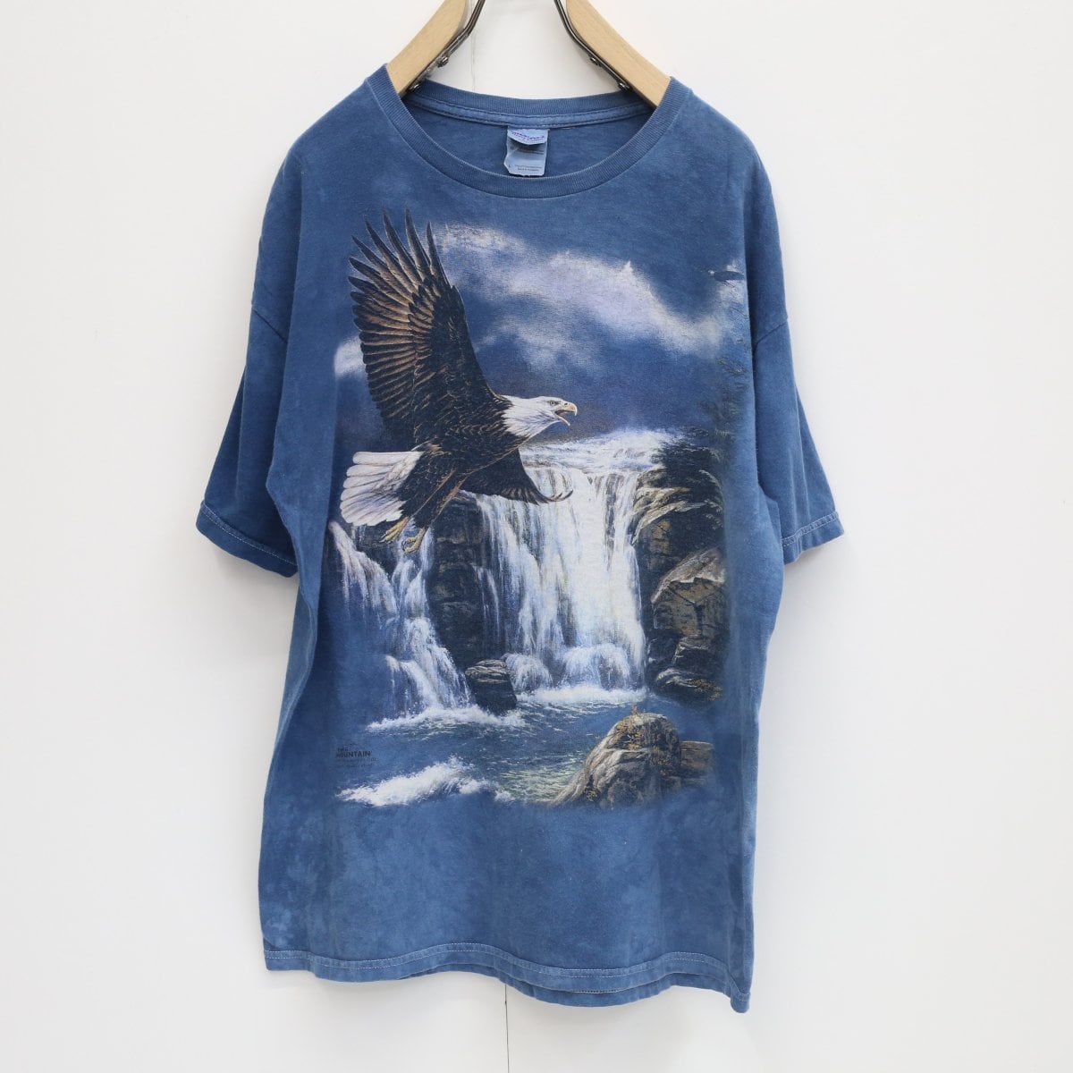 ギルダン 00年代 THE MOUNTAIN 鷲 滝 イーグル タイダイ染め 前面 プリント Tシャツ ブルー L 半袖