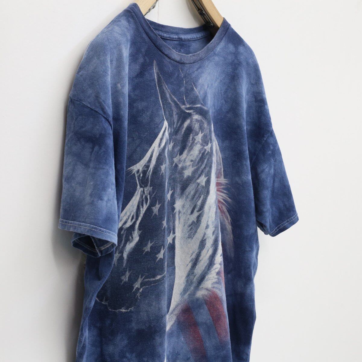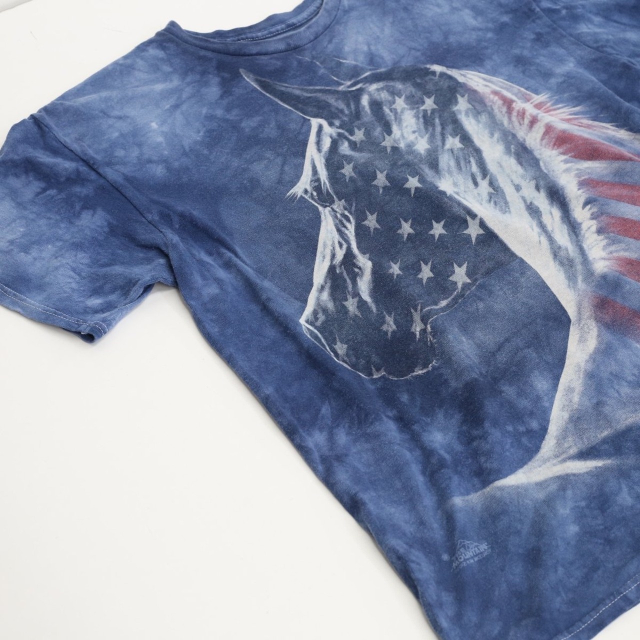 ザ マウンテン 00年代 馬 ウマ 星条旗 タイダイ染め 前面 プリント Tシャツ ブルー L 半袖