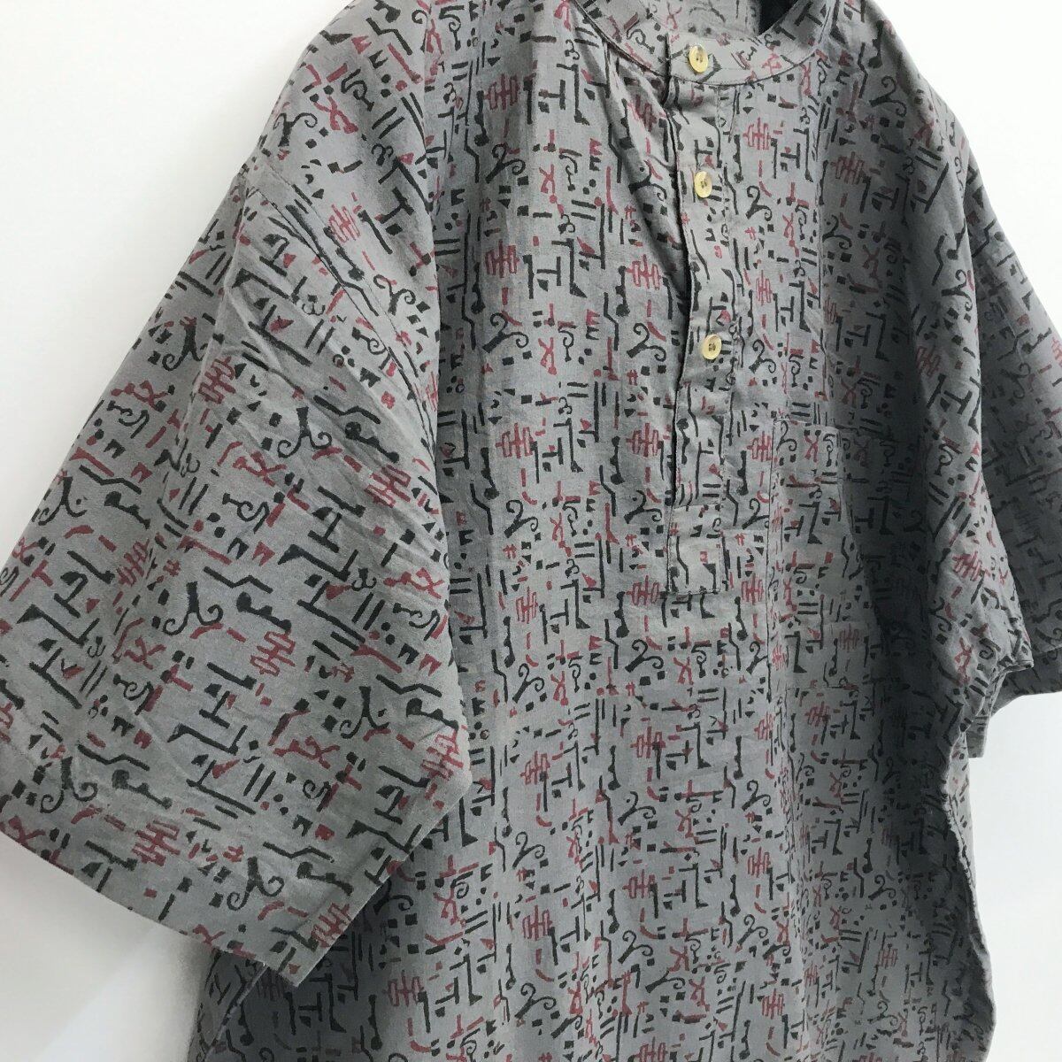 GRAMEEN CHECK BANGLADESH グラミンチェックバンドカラー エスニックシャツ グレー XL 長袖