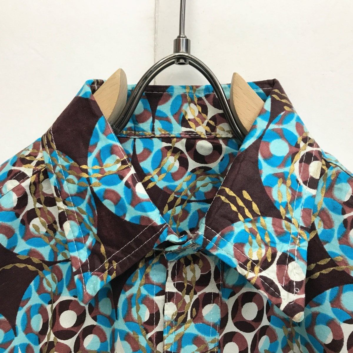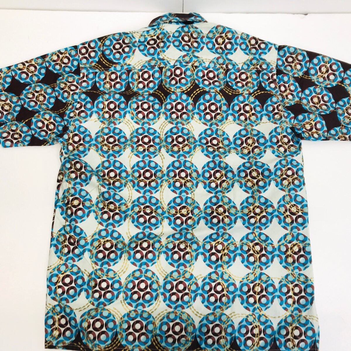 70〜 80年代あたり 美品 HAND MADE ? アフリカン風 プリントシャツ ブルー XXL 半袖