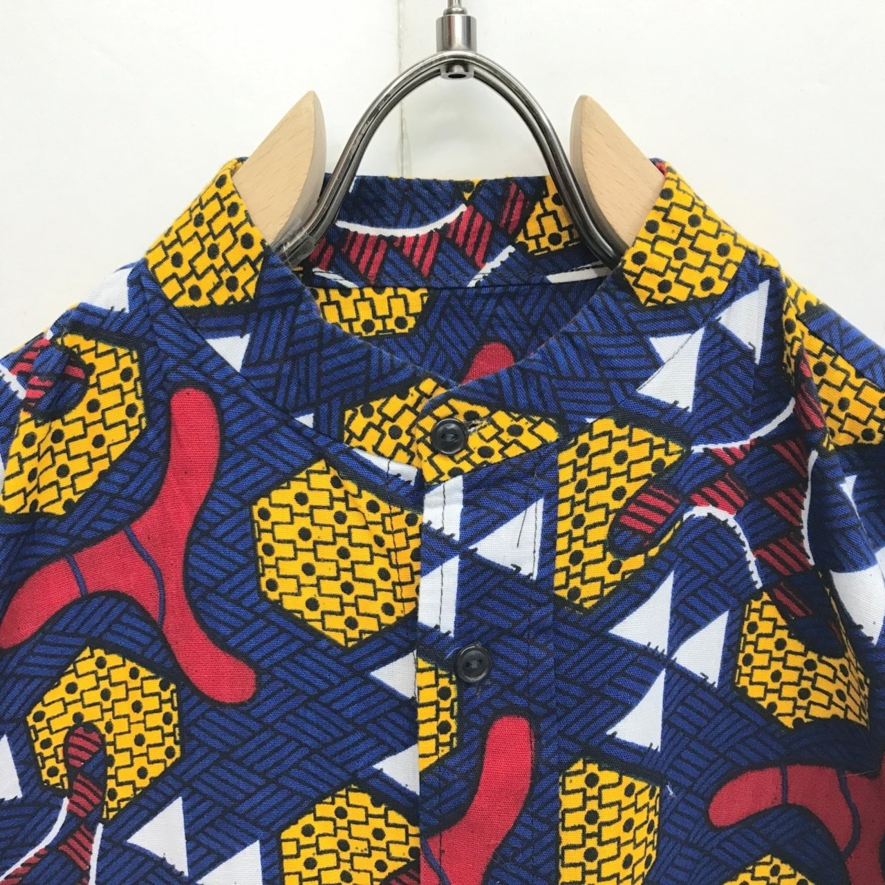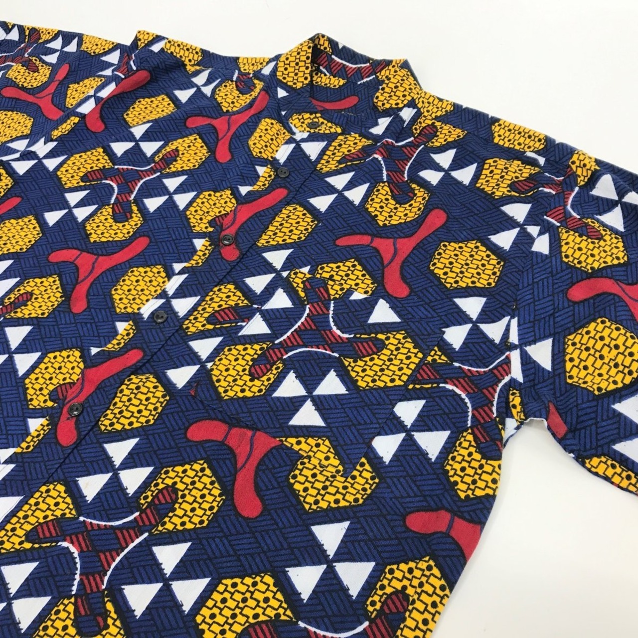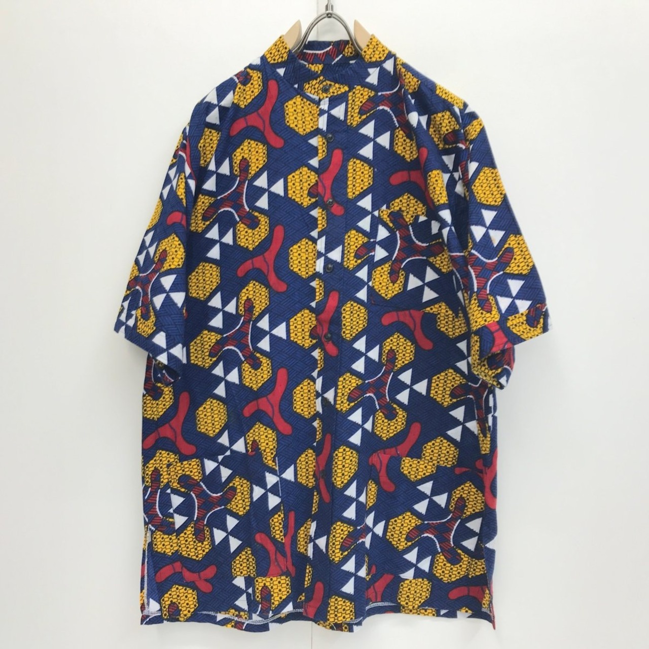 70〜 80年代あたり スタンドカラ? エスニック アフリカンプリントシャツ 民族柄 XXL 半袖