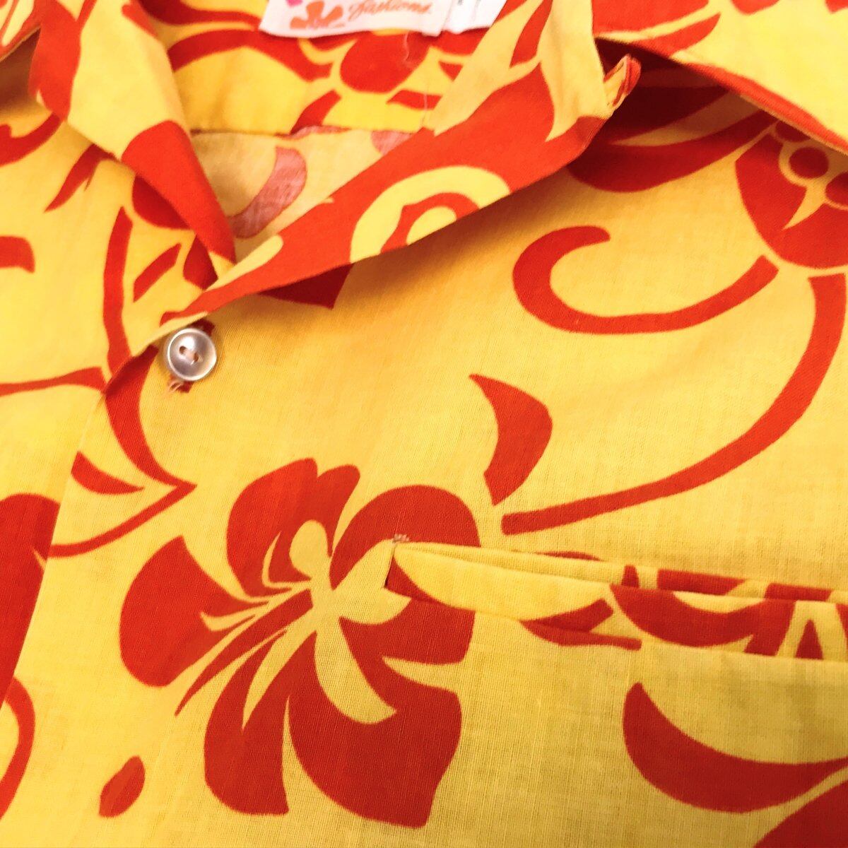 HAWAIIAN FASHIONS シアーズ 70年代 USA製 ボタニカル 草花大柄 襟芯入り アロハシャツ ハワイアンシャツ オレンジ XL 半袖
