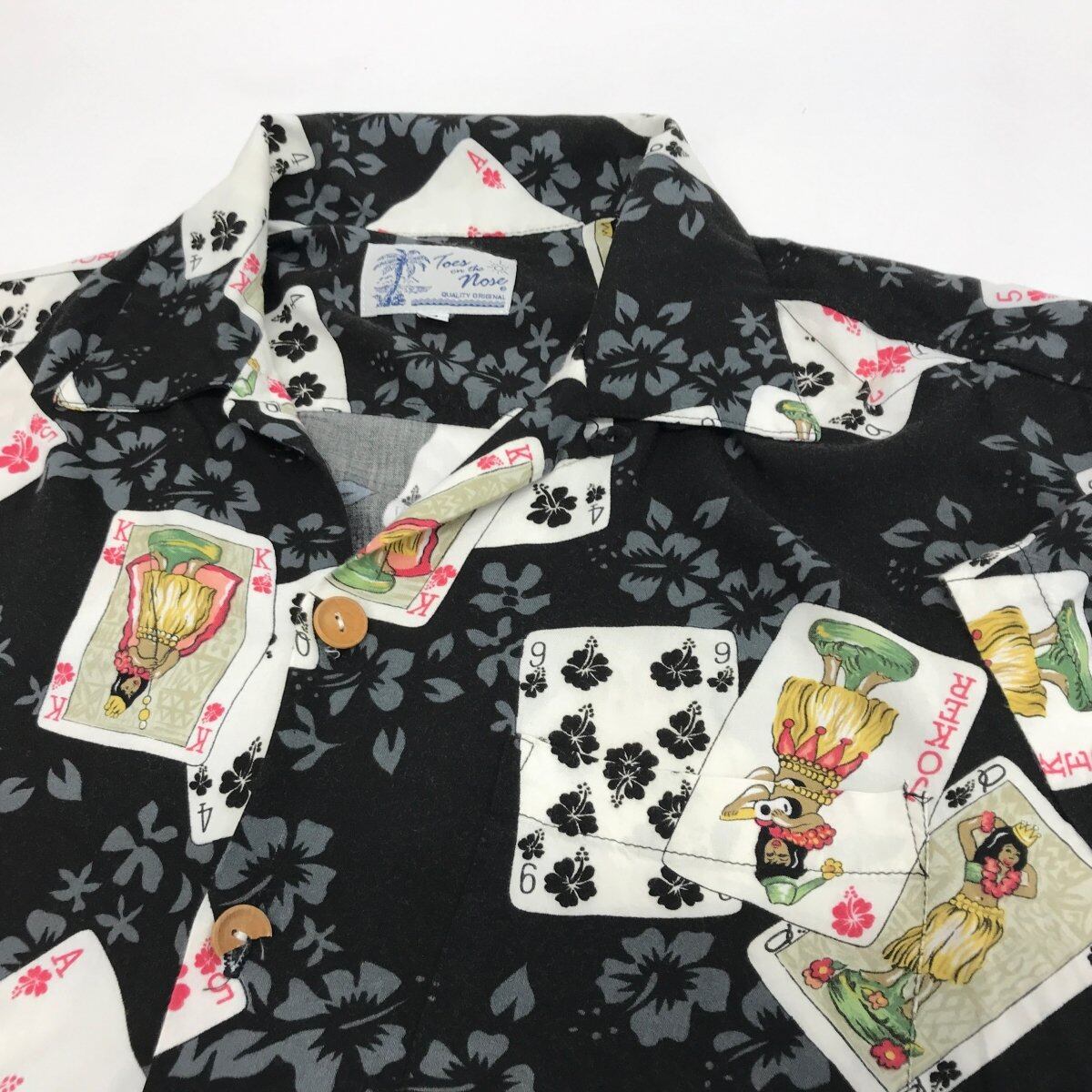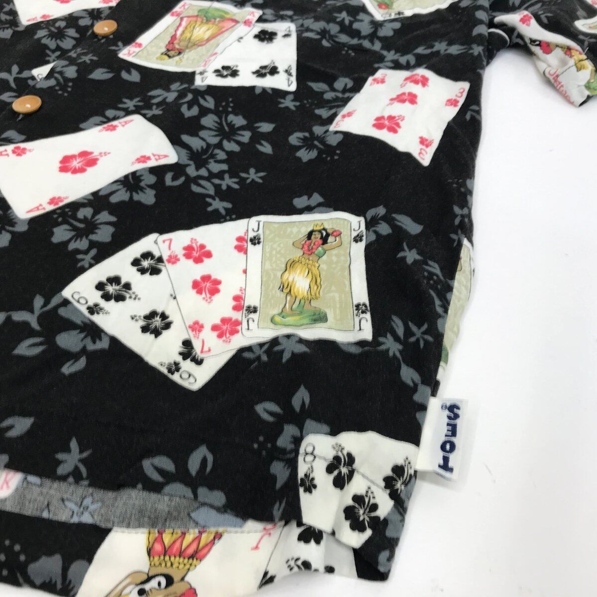 80〜 90年代 USA製 レーヨンアロハシャツ ハワイアンシャツ トランプ柄 ロカビリー ブラック XL 半袖