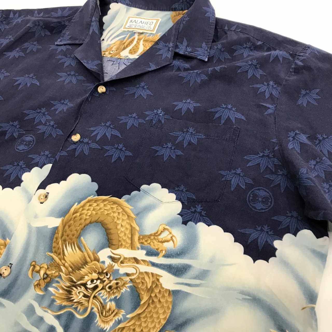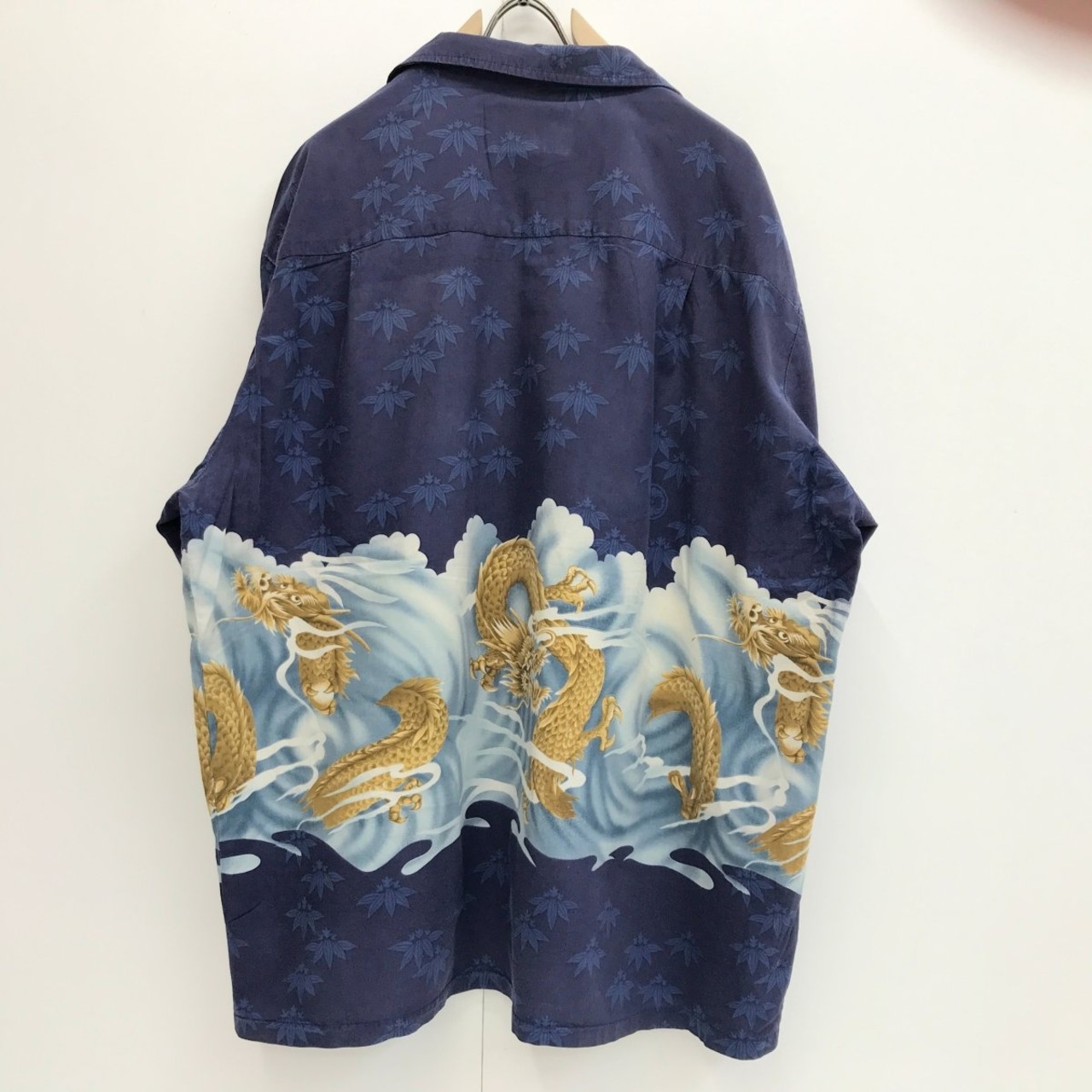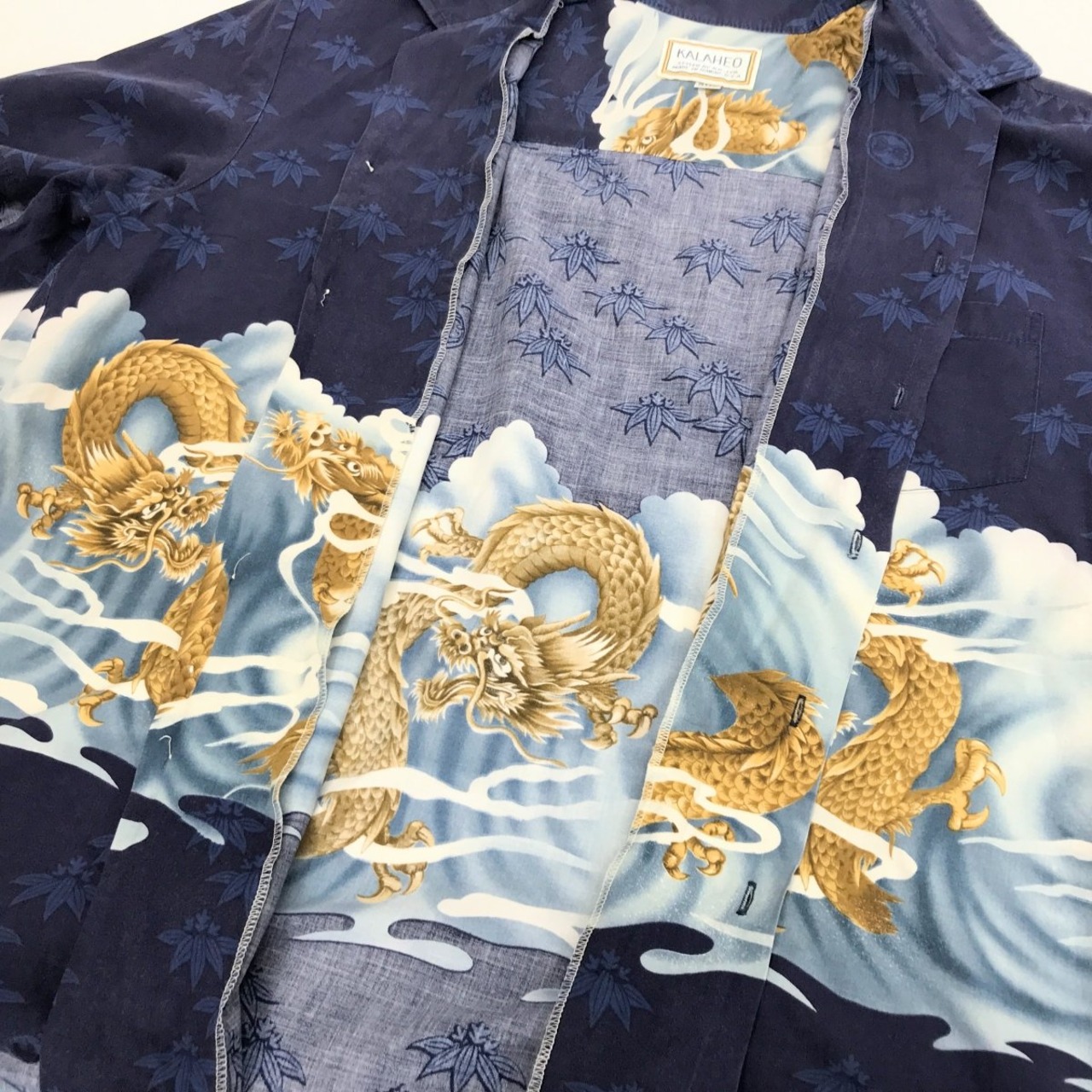 BY RJC カラヘオ 80〜 90年代 USA製 和柄 龍柄 アロハシャツ ハワイアンシャツ ネイビー XXL以上〜 半袖