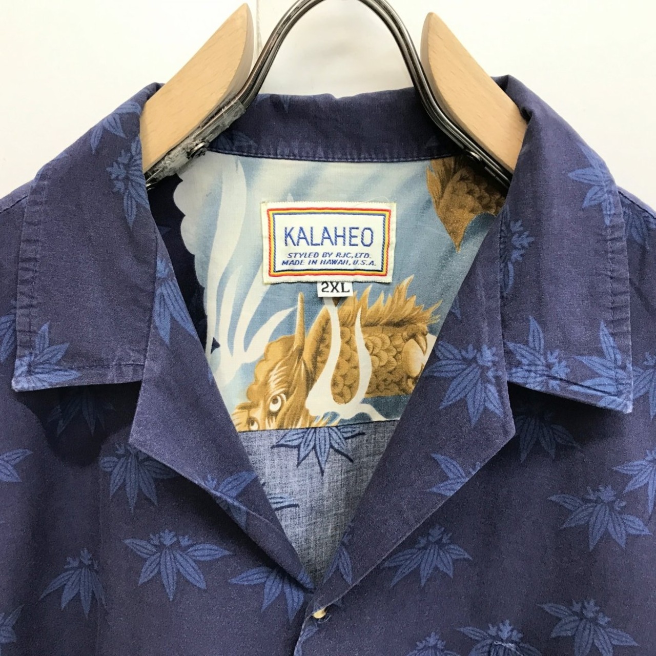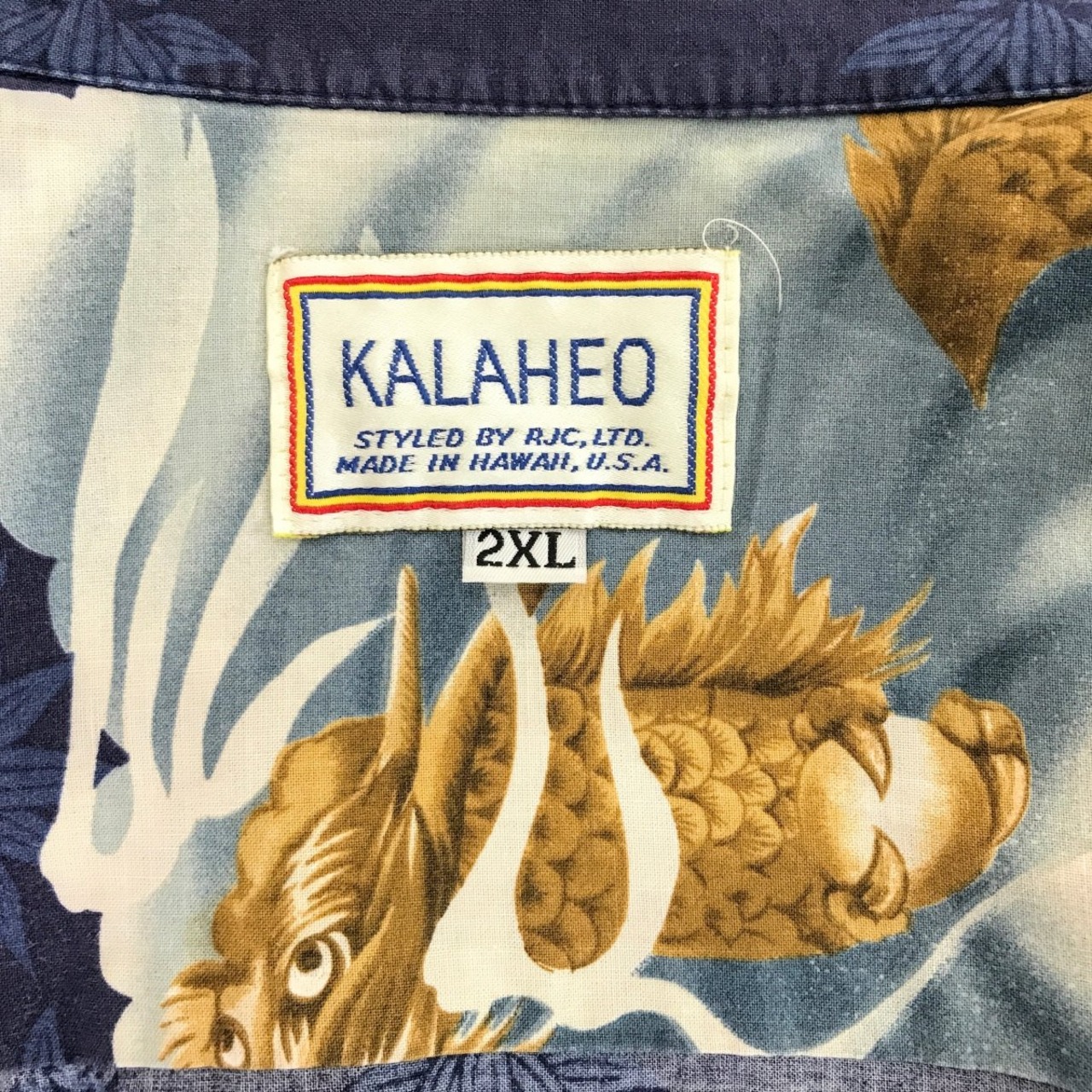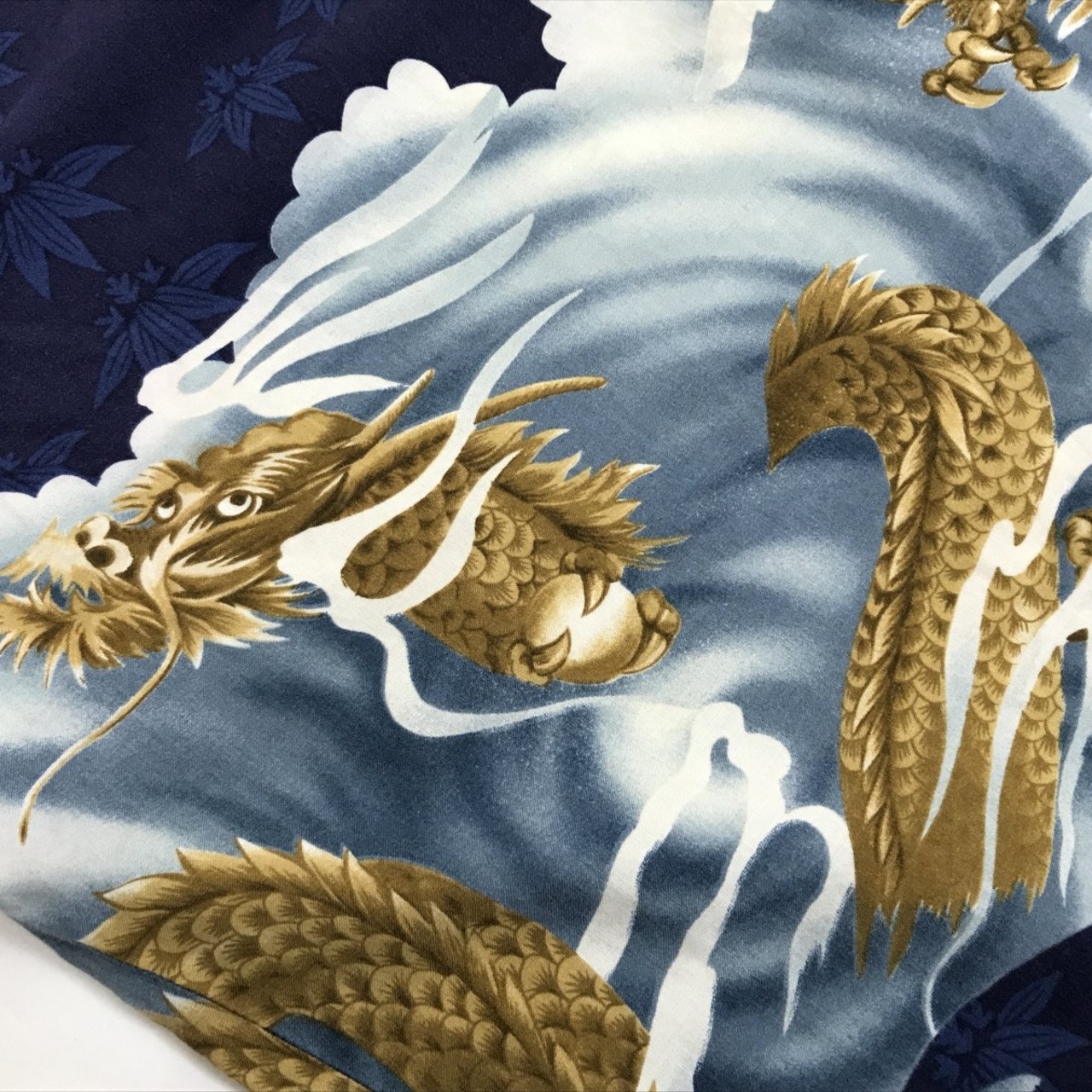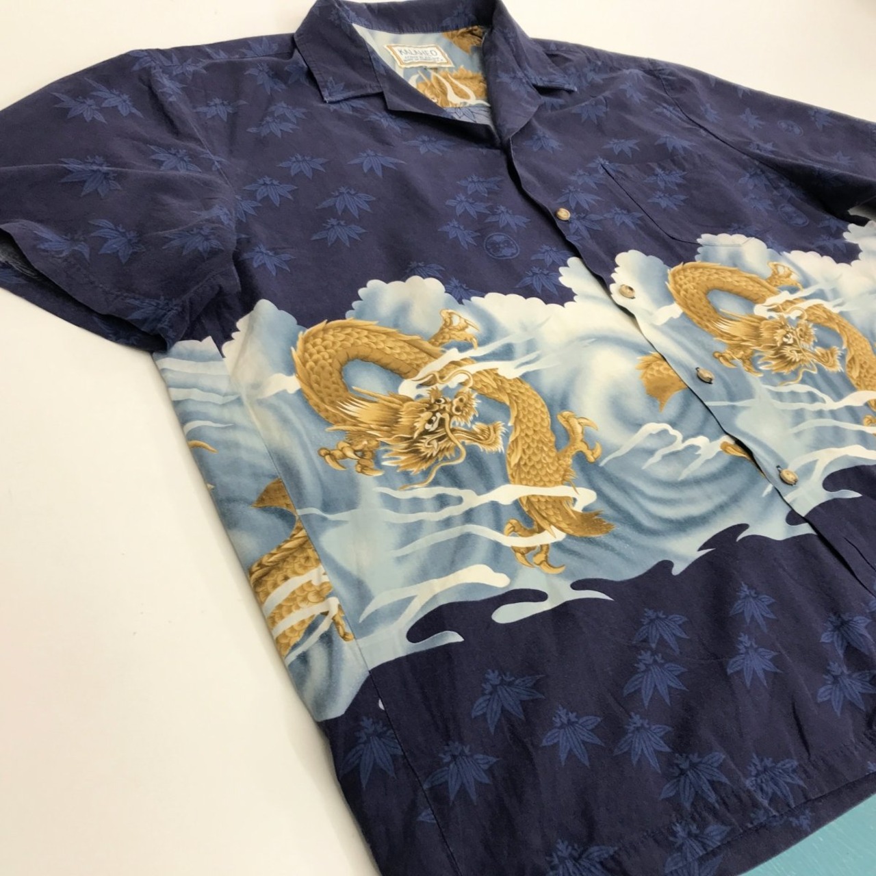 BY RJC カラヘオ 80〜 90年代 USA製 和柄 龍柄 アロハシャツ ハワイアンシャツ ネイビー XXL以上〜 半袖