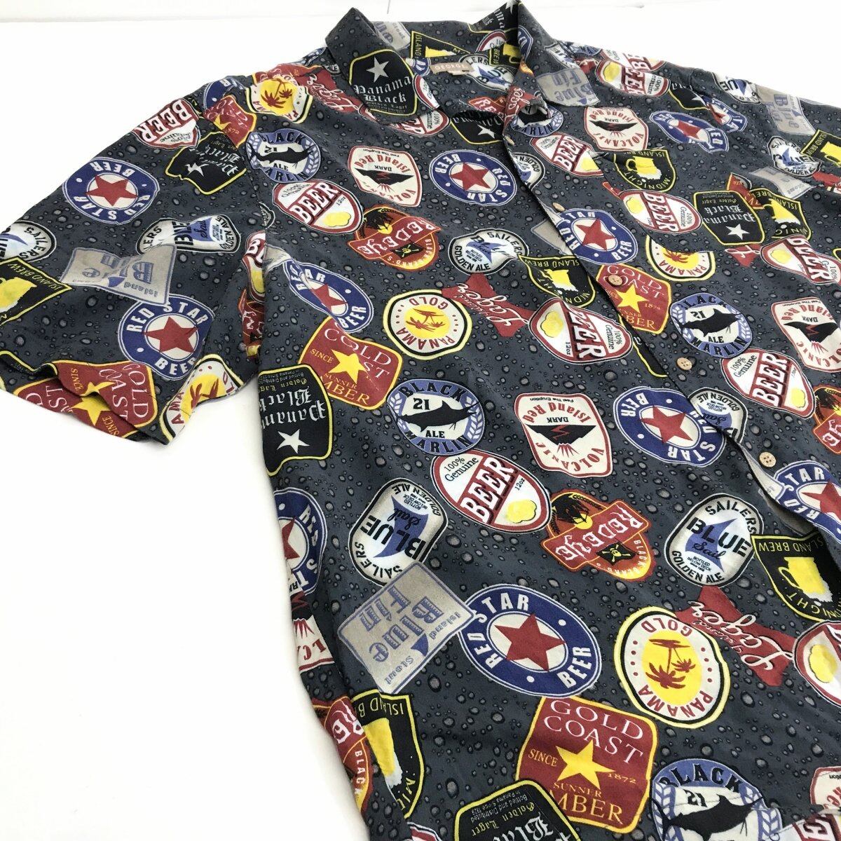 GEORGE ジョージ 90〜 00年代 総柄 オープンシャツ レーヨンシャツ柄シャツ グレー ビールラベル いっぱい 3XL 半袖