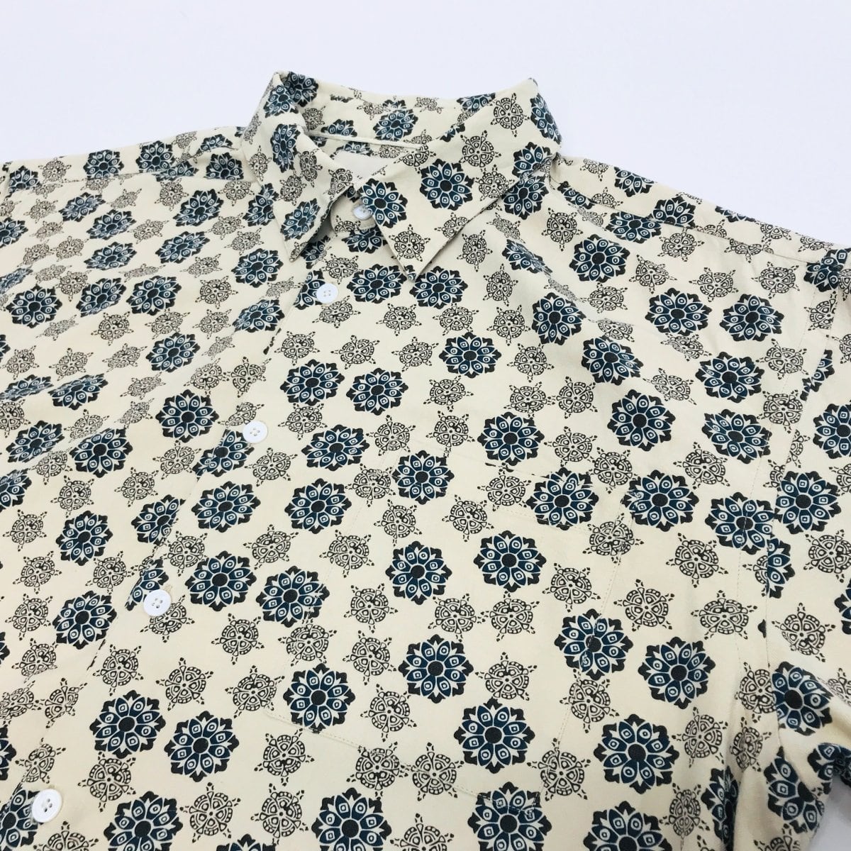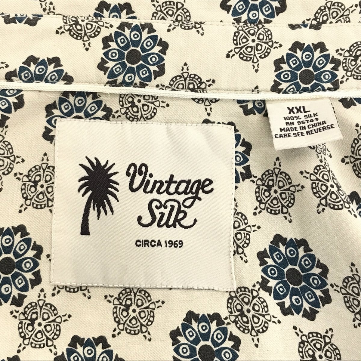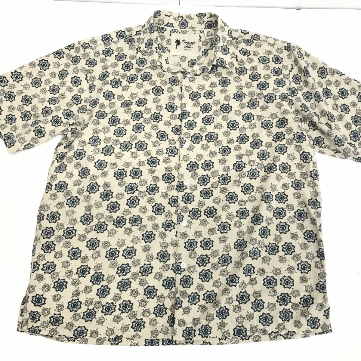 VINTAGE SILK ビンテージ シルク アラベスク風 モノグラム風柄 総柄 シルクシャツ うすベージュ 3XL 半袖
