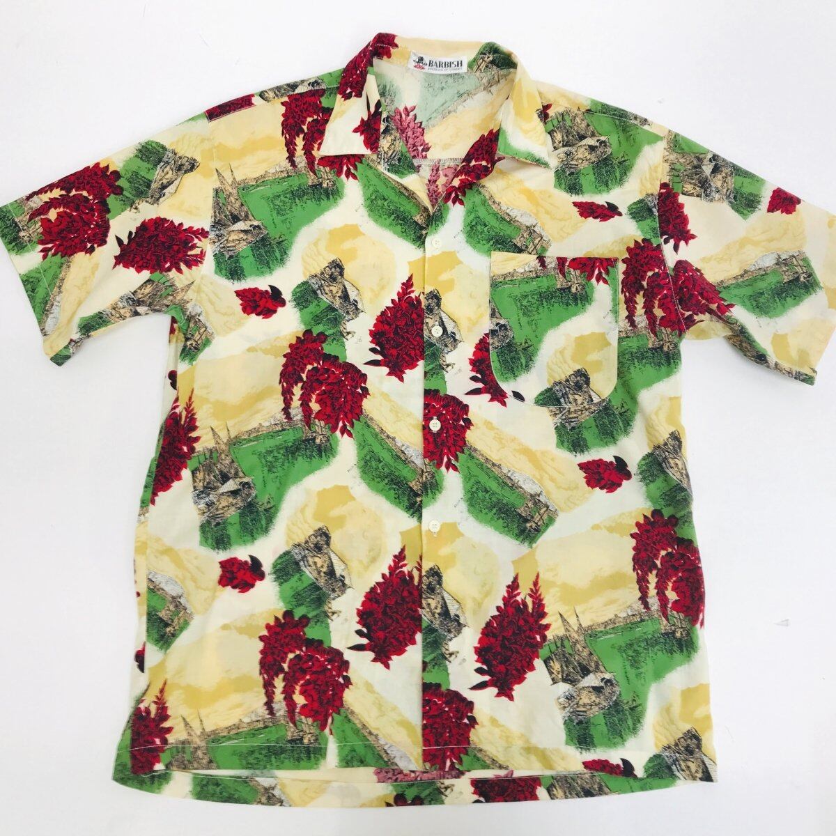 BARBISH 80〜 90年代 オープンカラーシャツ ロマンチック 総柄シャツ クリーム ベージュ XL 半袖