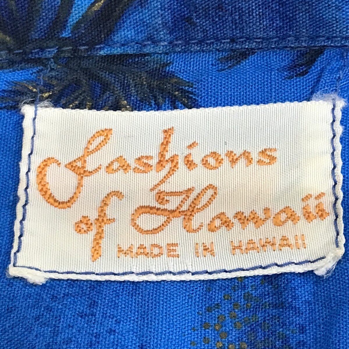 FASHIONS OF HAWAII 50〜 60年代 USA製 ハワイアンシャツ アロハシャツ ブルー XL 半袖