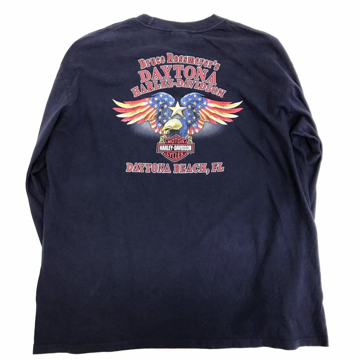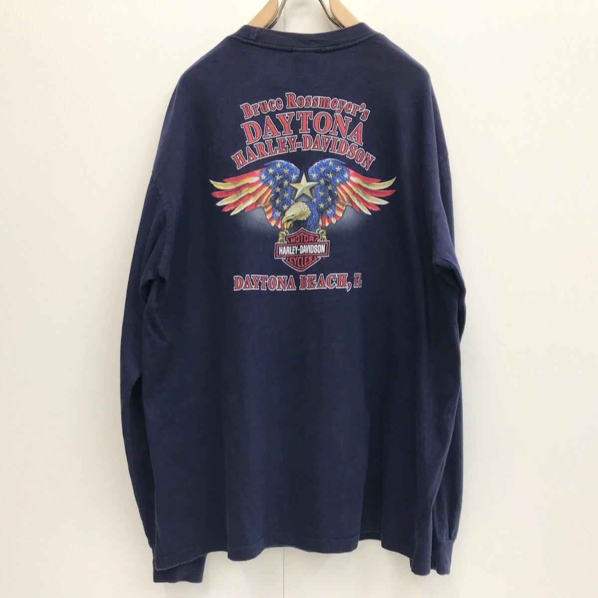 HARLEY DAVIDSON ハーレーダビッドソン 00年代 BRUCE ROSSEMRYER'S DAYTONA 両面プリント 長袖Tシャツ ロンT ネイビー XXL 長袖