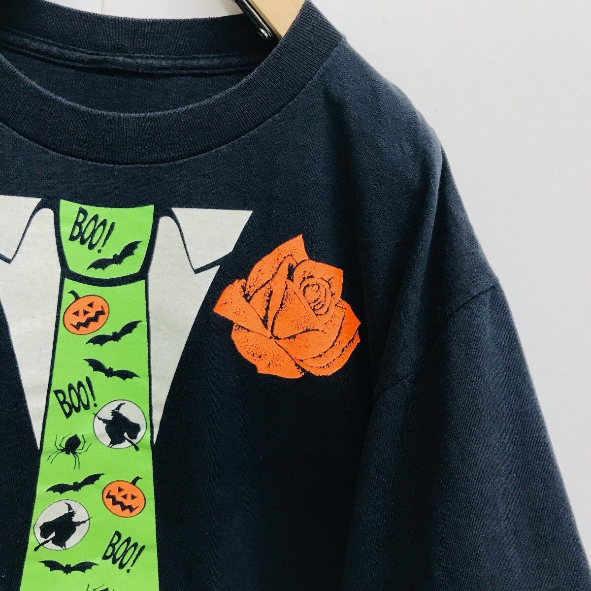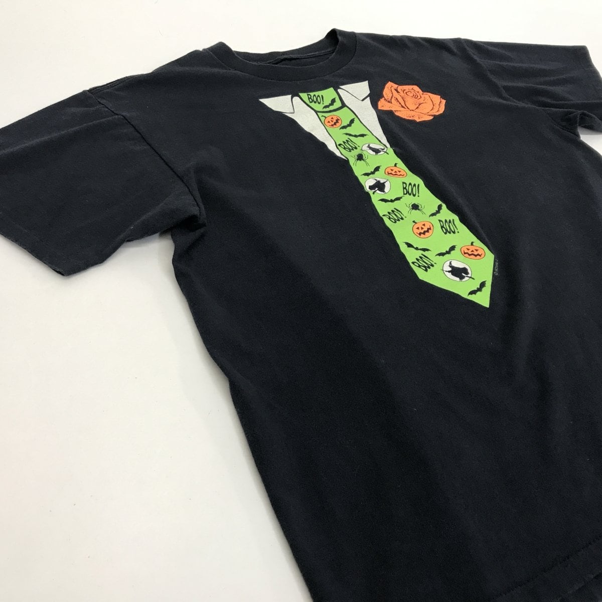 ROYALT PRINTS 90年代あたり だまし絵Tシャツ トロンプルイユ ネクタイ Tシャツ 蛍光プリント ブラック L 半袖