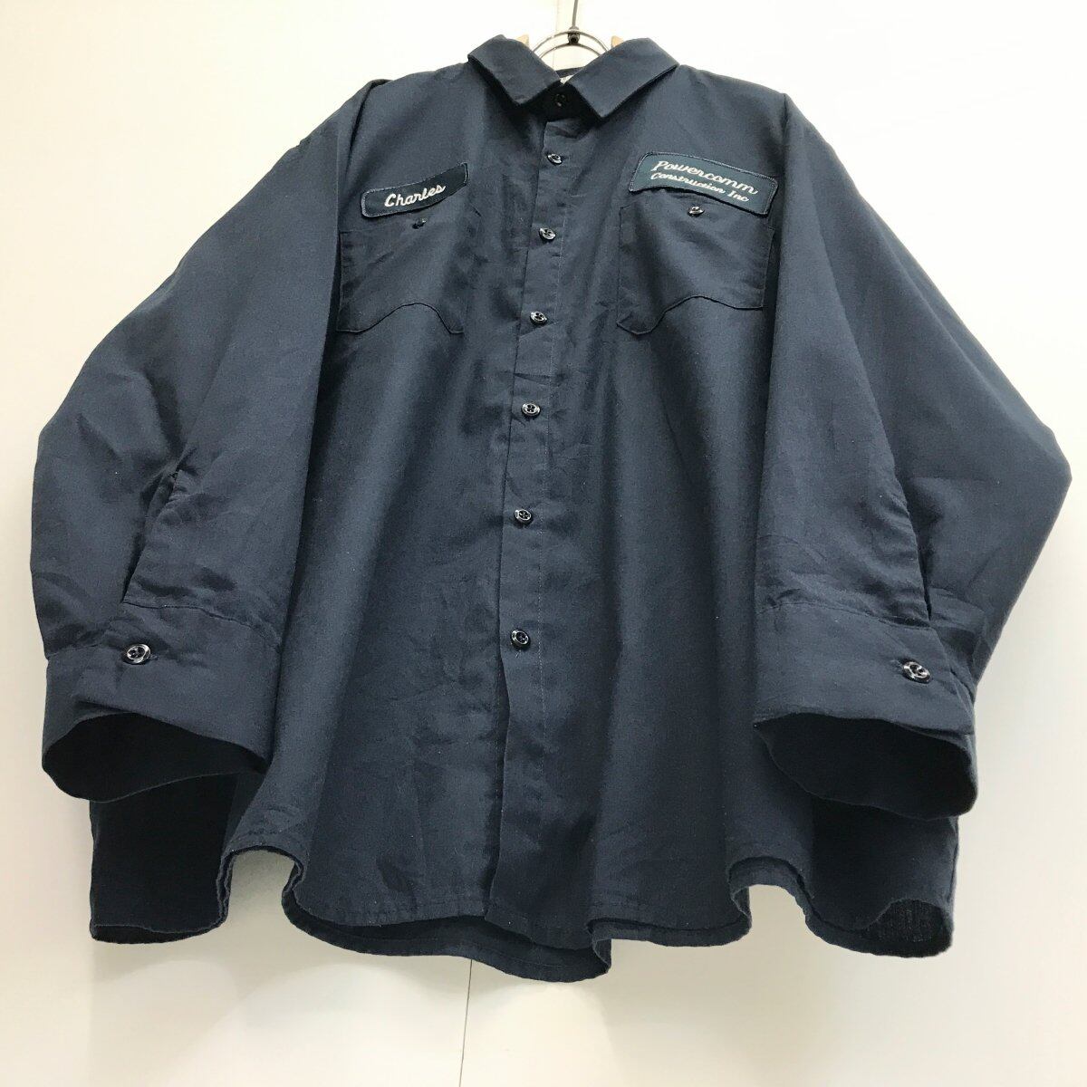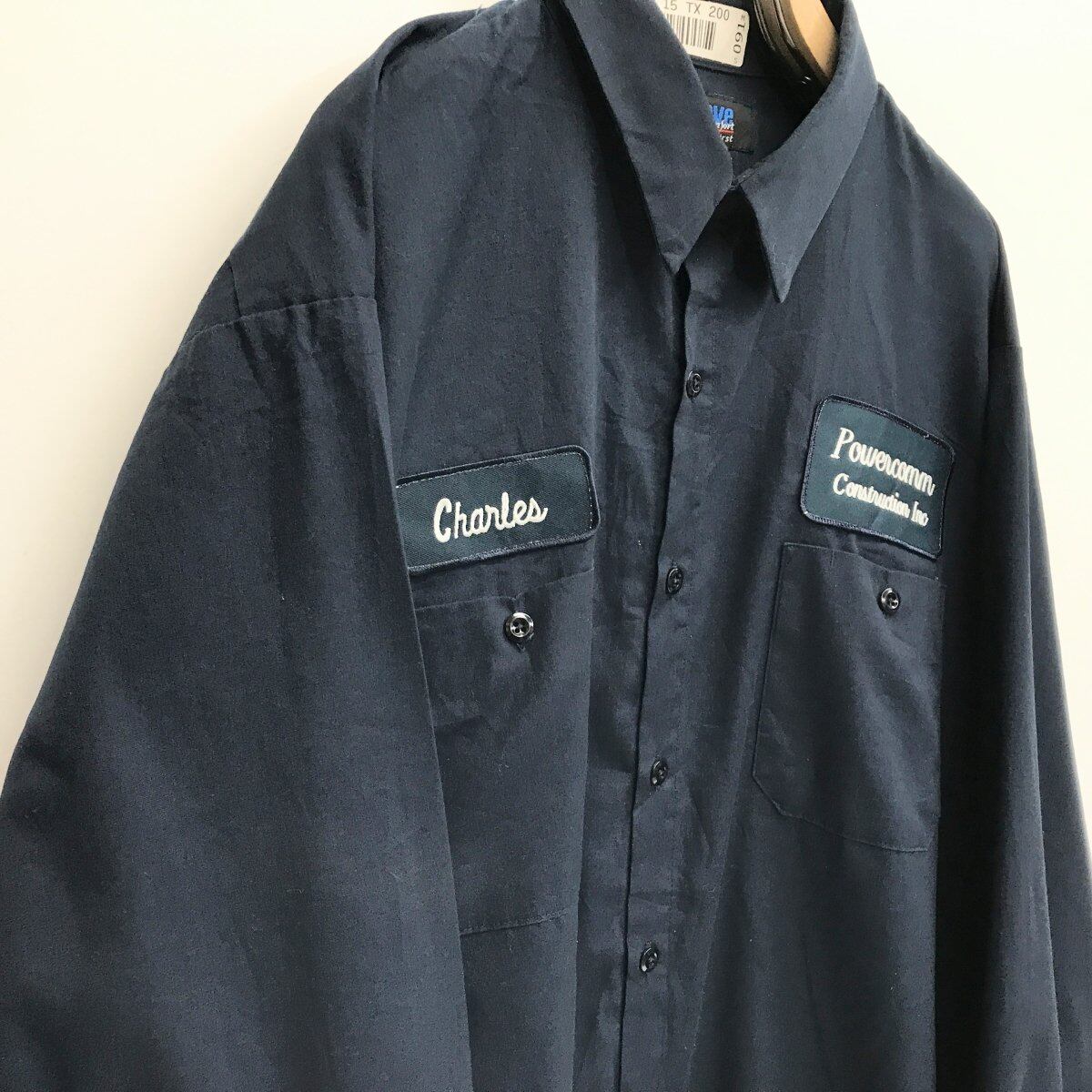 UNIWEAVE ユニウェーブ 企業ロゴ 左右ワッペン付き ワークシャツ ダークネイビー 3XL 長袖