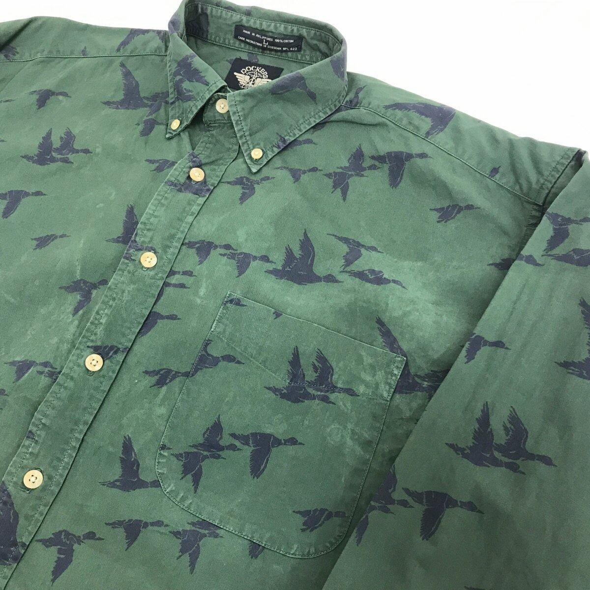 DOCKERS ドッカーズ LEVI'S 90年代 DUCK 鴨柄 ハンティング 総柄シャツ ボタンダウンシャツ ハンターグリーン XL