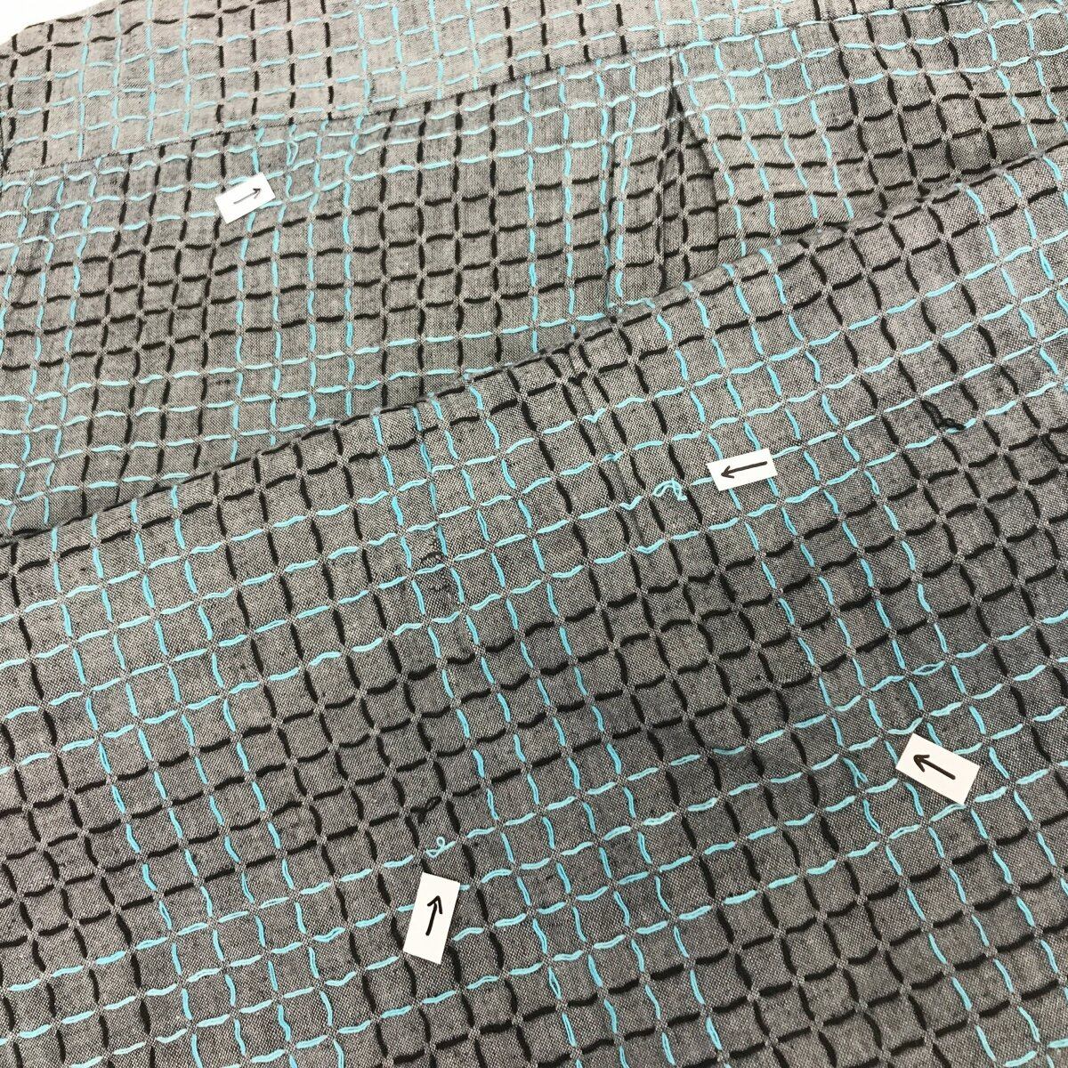 下地に縫われて立体チェックが出来上がって