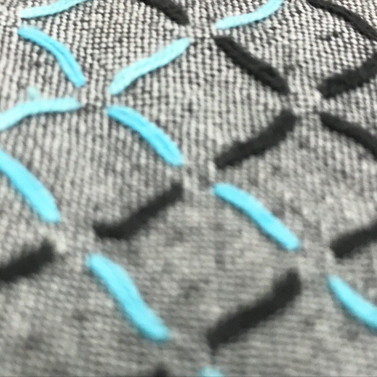 グレー地にミントブルーとブラックの刺繍糸が