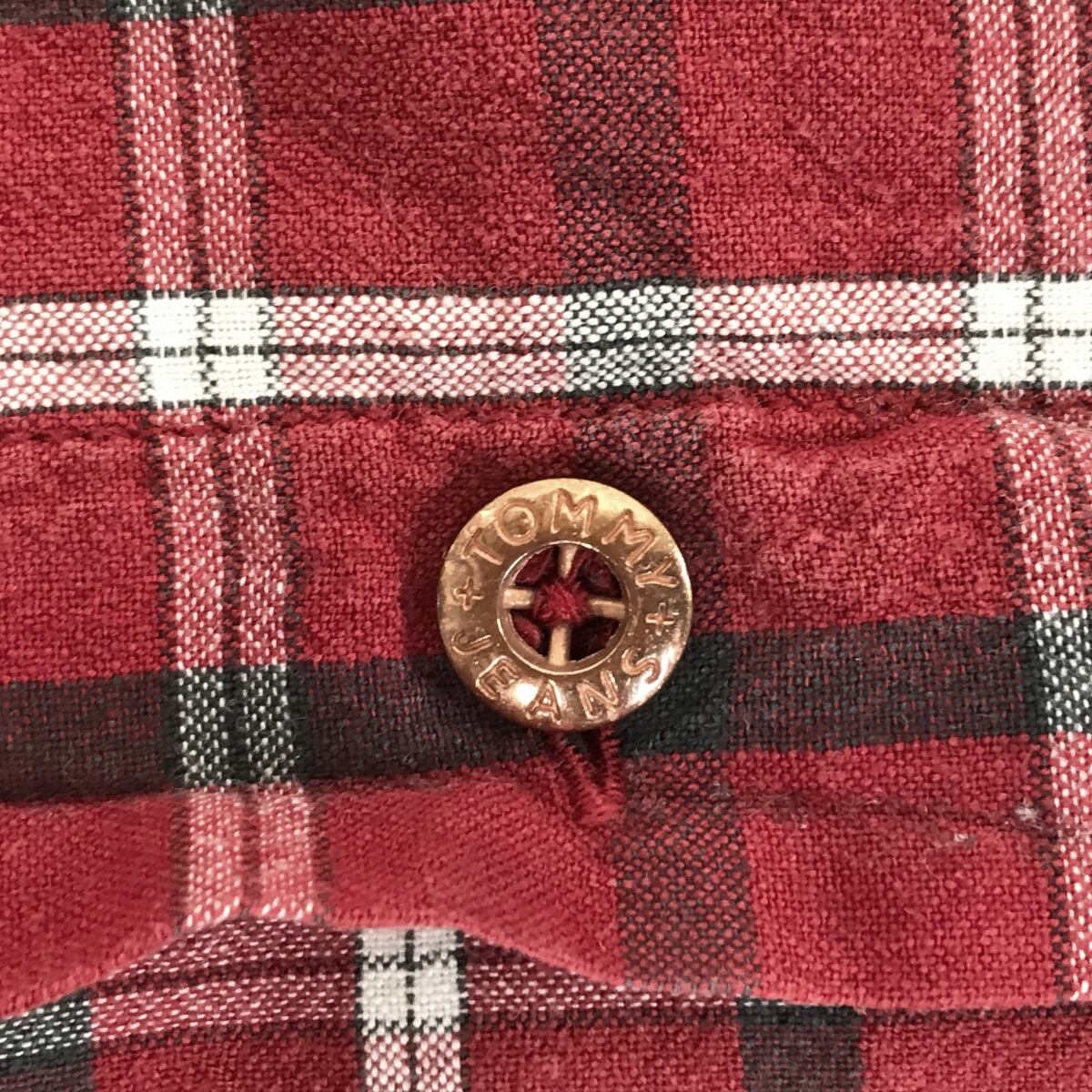 TOMMY HILFIGER TOMMY JEANS トミージーンズ トミーヒルフィガー 90年代 チェックシャツ フィッシングシャツ風 レッド XL 長袖