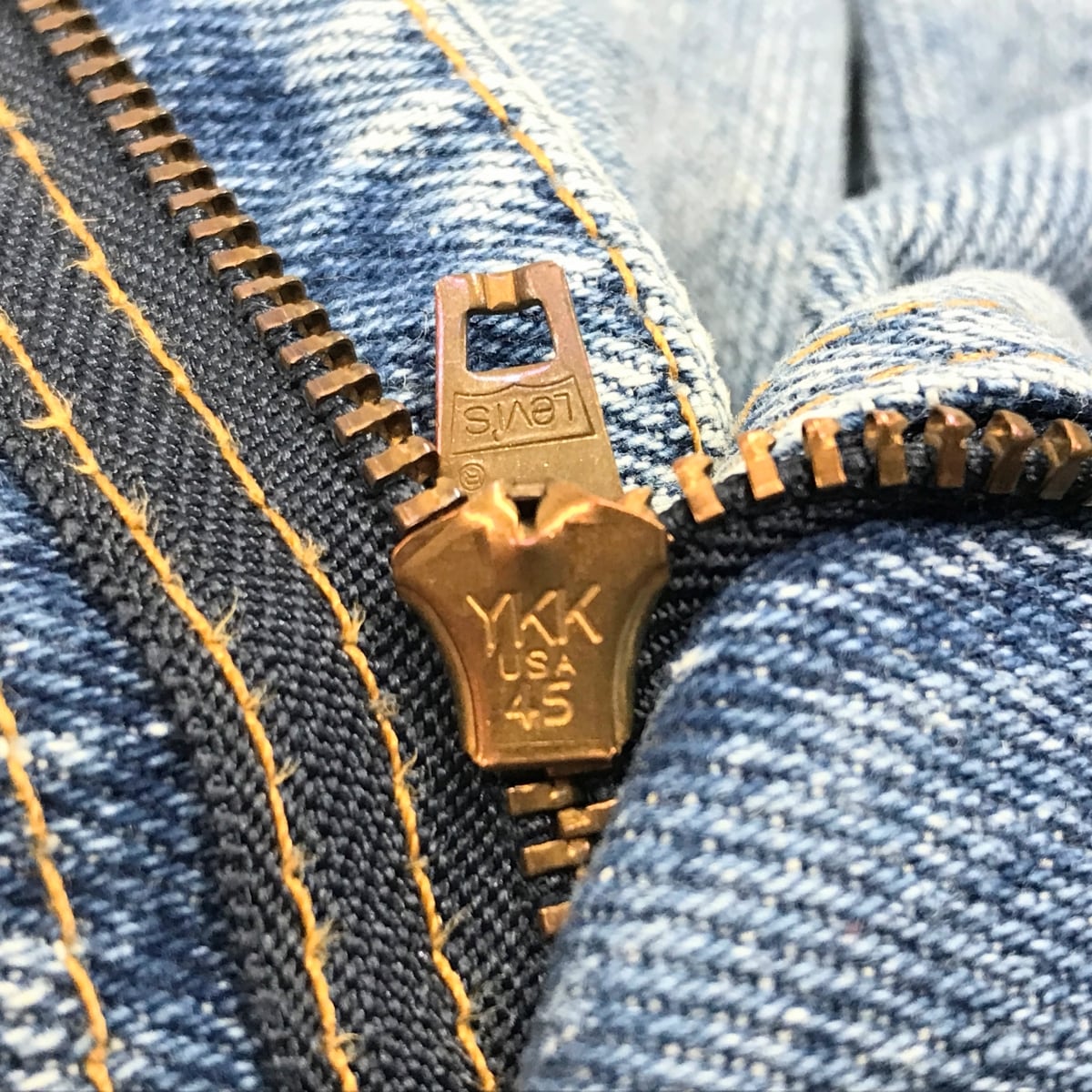フロントジップは Levis刻印入りの YKK USA 45ファスナー