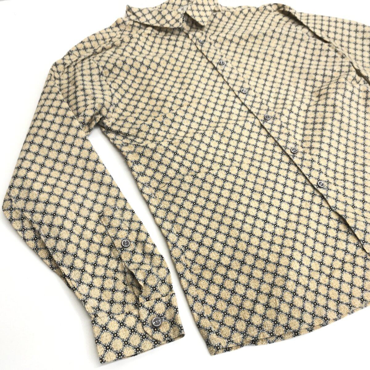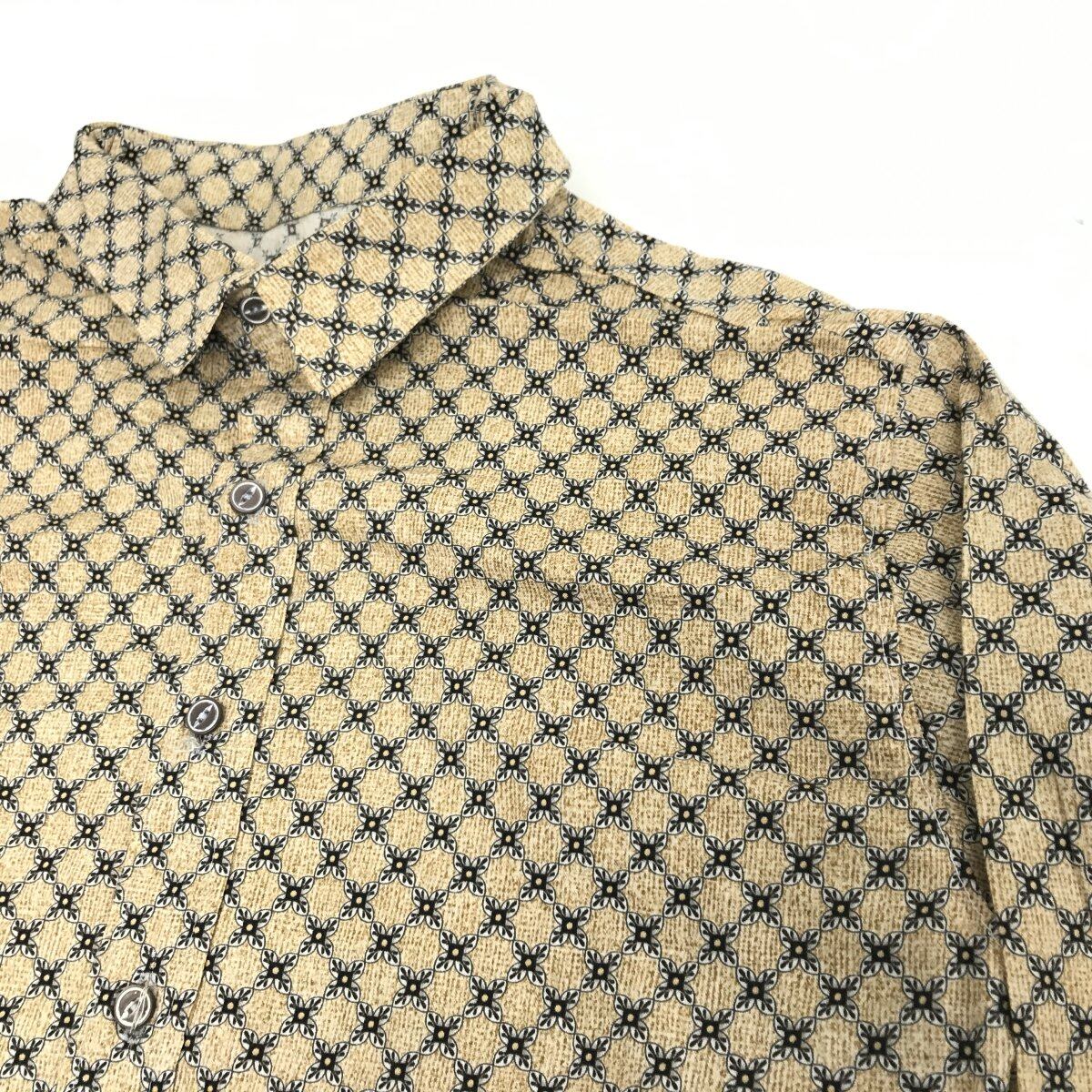 USED USED 80? 90年代 総柄シャツ コットンシャツ ベージュ系 M 長袖 -4