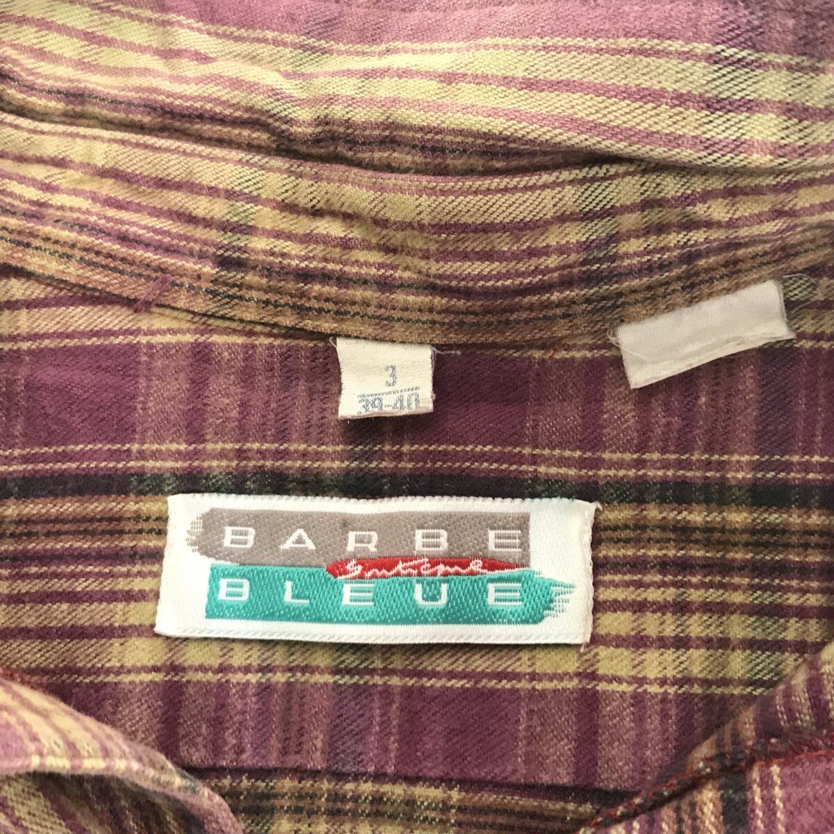 BARBE BLEUE 80〜 90年代 チェックプルオーバー グランパシャツ ライトワイン・イエローグリーン系 L 長袖