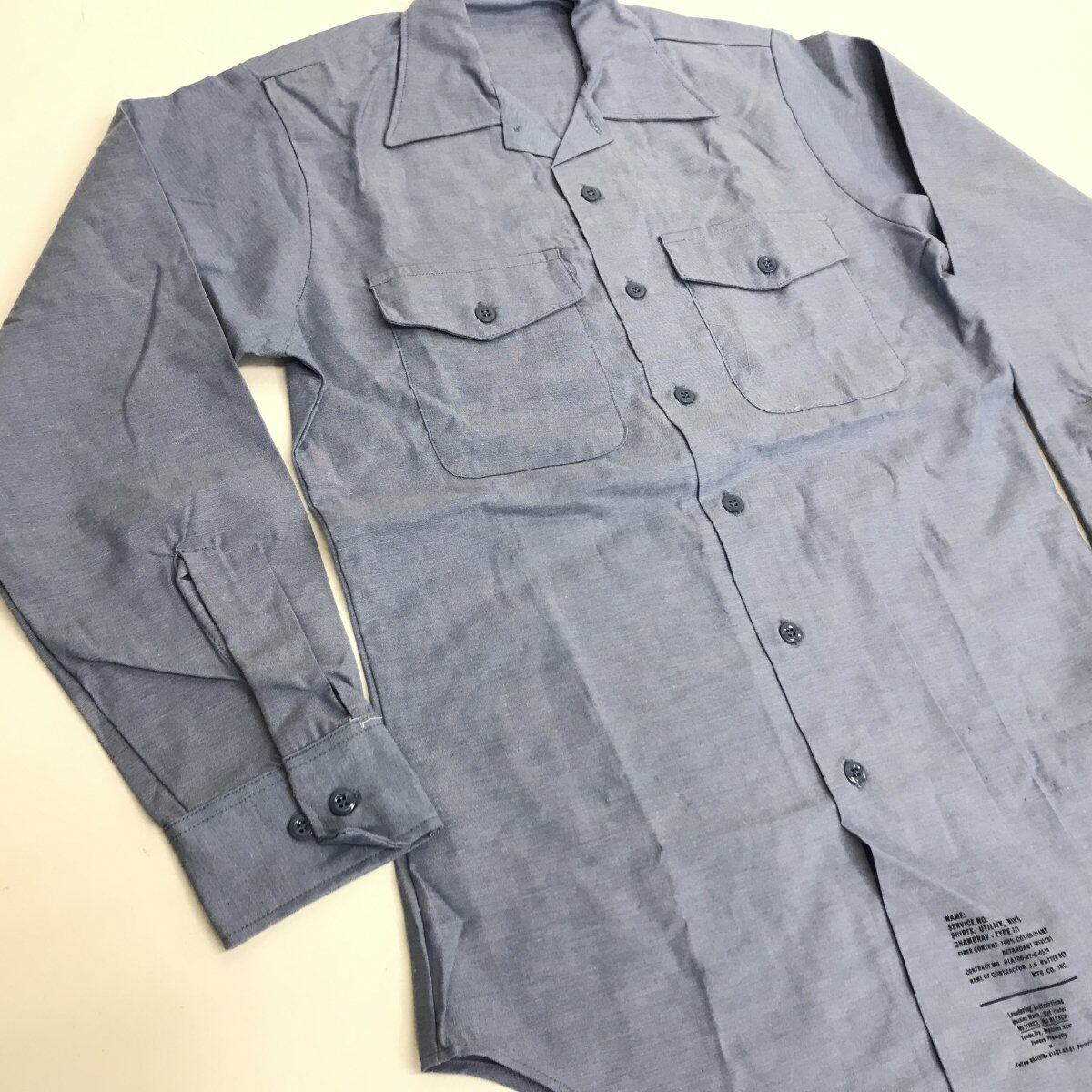 U.S.NAVY アメリカ軍 デッドストック 80年代 CHAMBRAY SHIRTS-TYPE III 米軍 シャンブレーシャツ サックスブルー L 長袖 -12