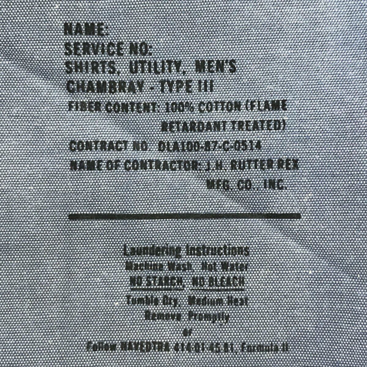 U.S.NAVY アメリカ軍 デッドストック 80年代 CHAMBRAY SHIRTS-TYPE III 米軍 シャンブレーシャツ サックスブルーL 長袖 -13