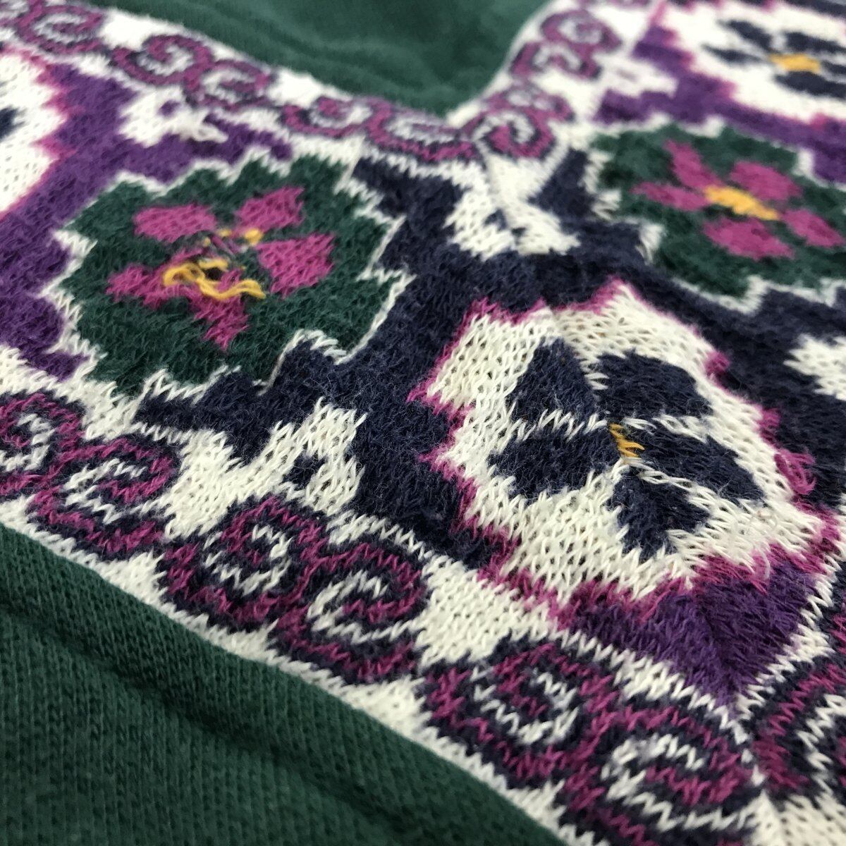 AMERICAN SPORTIF 80〜 90年代 花刺繍入り ニット切り替えVライン入り ラグランスウェット ハンターグリーン S 長袖 -14