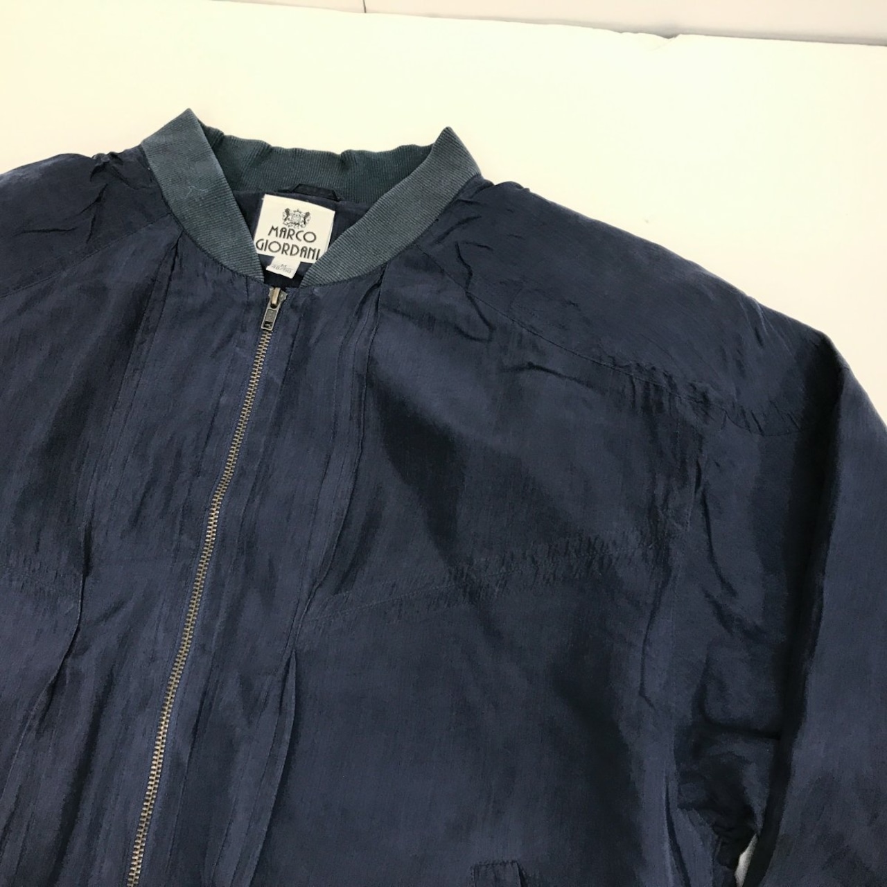 MARCO GIORDANI 90年代あたり シルクジャンパー シルクブルゾン シルクジャケット ネイビー XL 長袖 -05