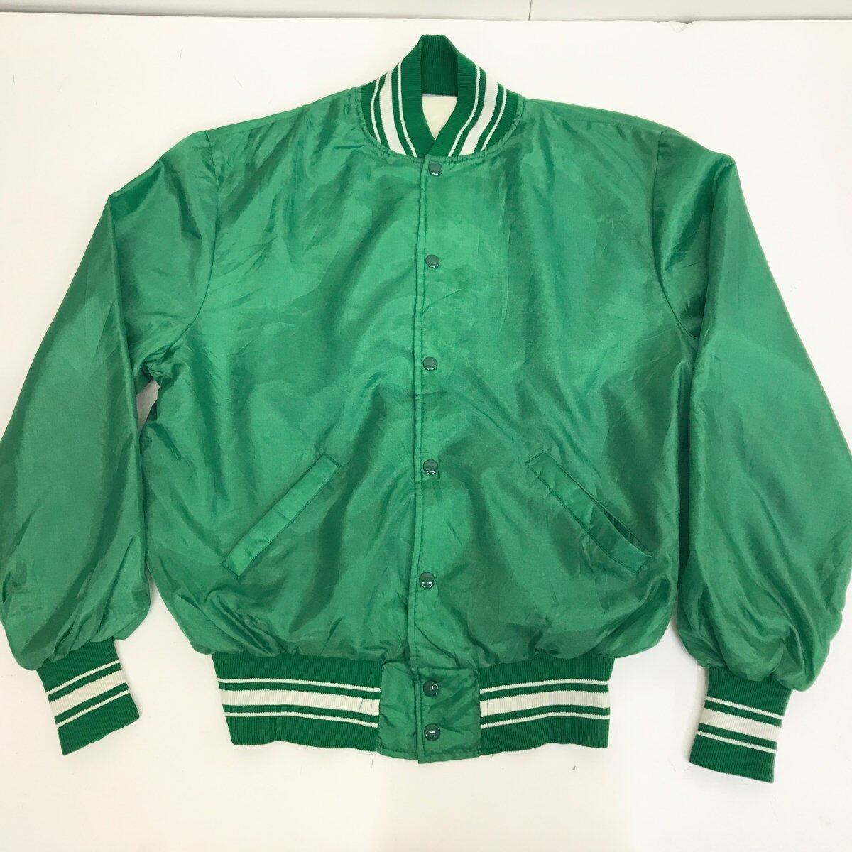 US VINTAGE 80〜 90年代 バックレター入り ナイロンベースボールジャケット グリーン XXL