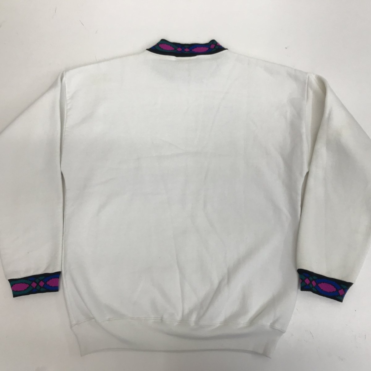 TSF SPORTSWEAR 90年代 USA製 ニットトリミング メッセージ プリント入り スウェット ホワイト XXL 長袖