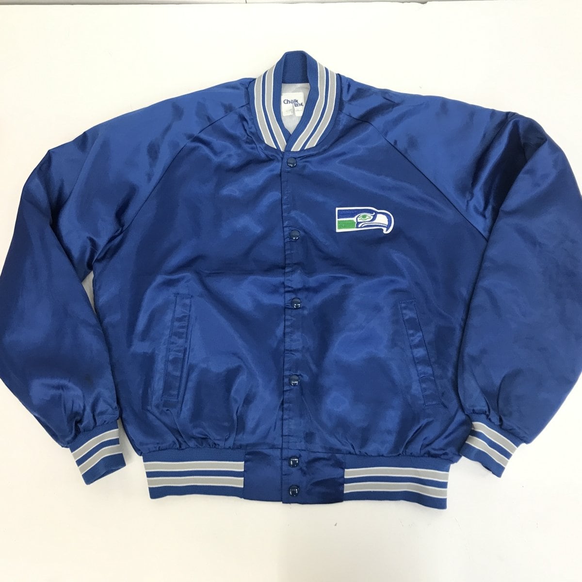 CHALK LINE 80〜 90年代 USA製 NFL シアトル シーホークス ナイロン スタジャン ベースボールジャケット 光沢ブルー XL 長袖