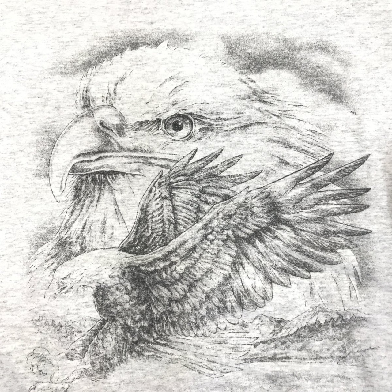 FRUIT OF THE LOOM バルドイーグル 袖プリント入り アニマル プリントスウェット ライトアッシュグレー XXL 長袖