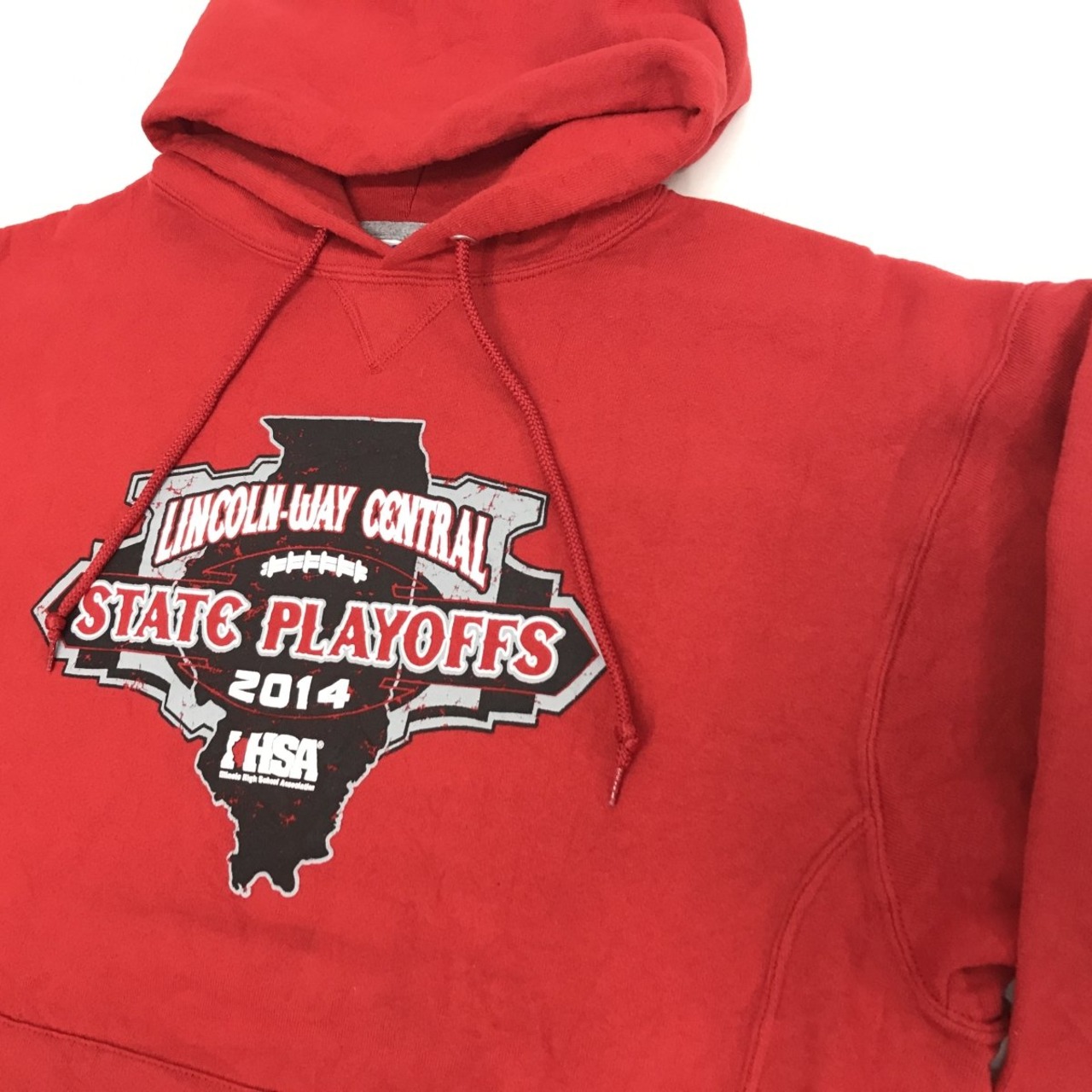 RUSSEL ラッセル 00年代 STATE PLAYOFFS FOOTBALL プリント入り サイドリブ付き スウェットパーカー フーディー レッド XXL長袖