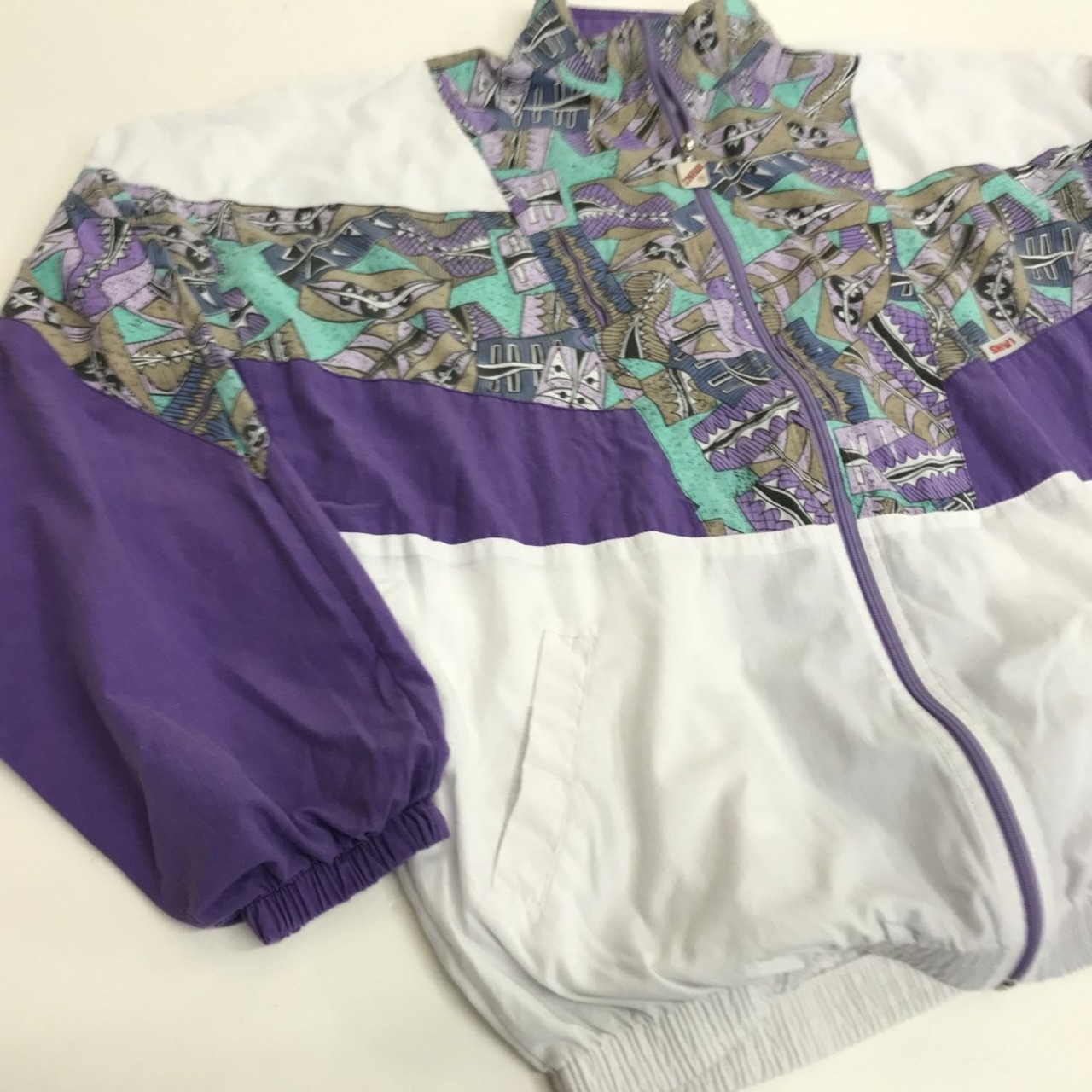 SHIWI 90年代 総柄 切り替え 柄入り ポリ コットン ジャケット マルチカラー XL 長袖