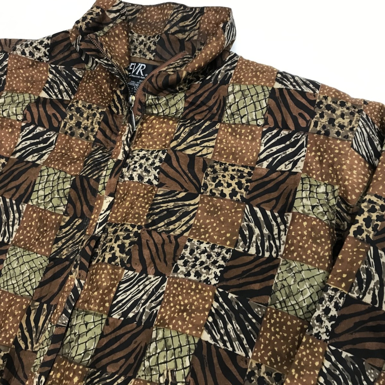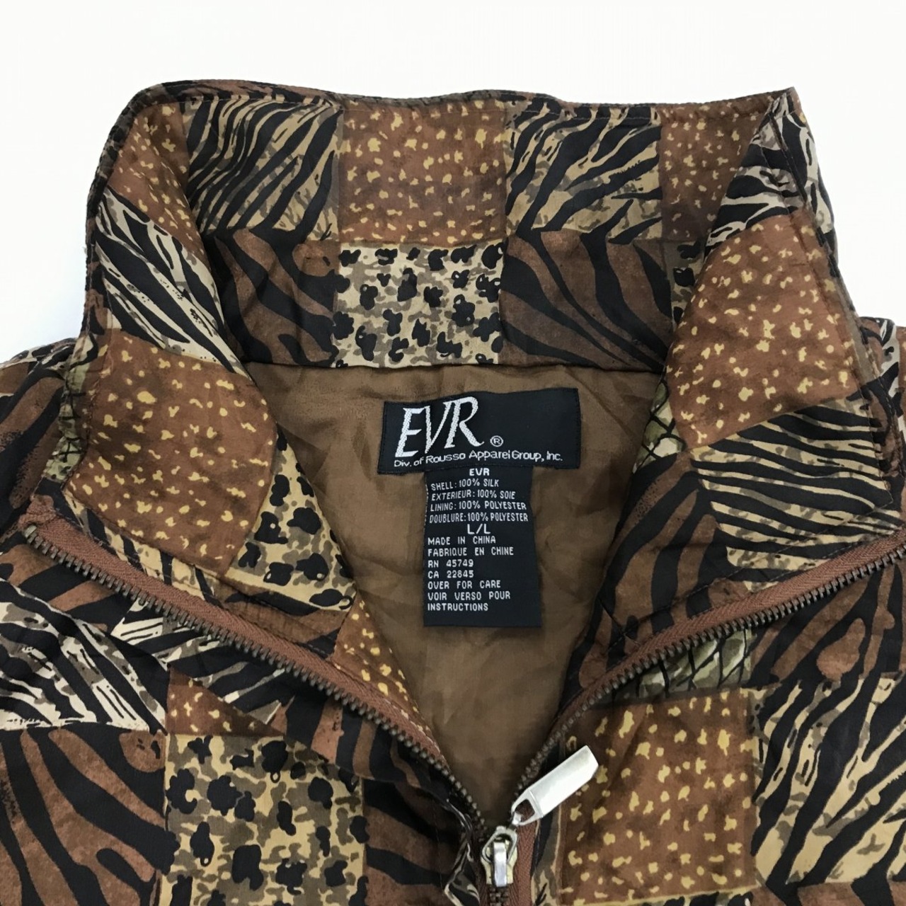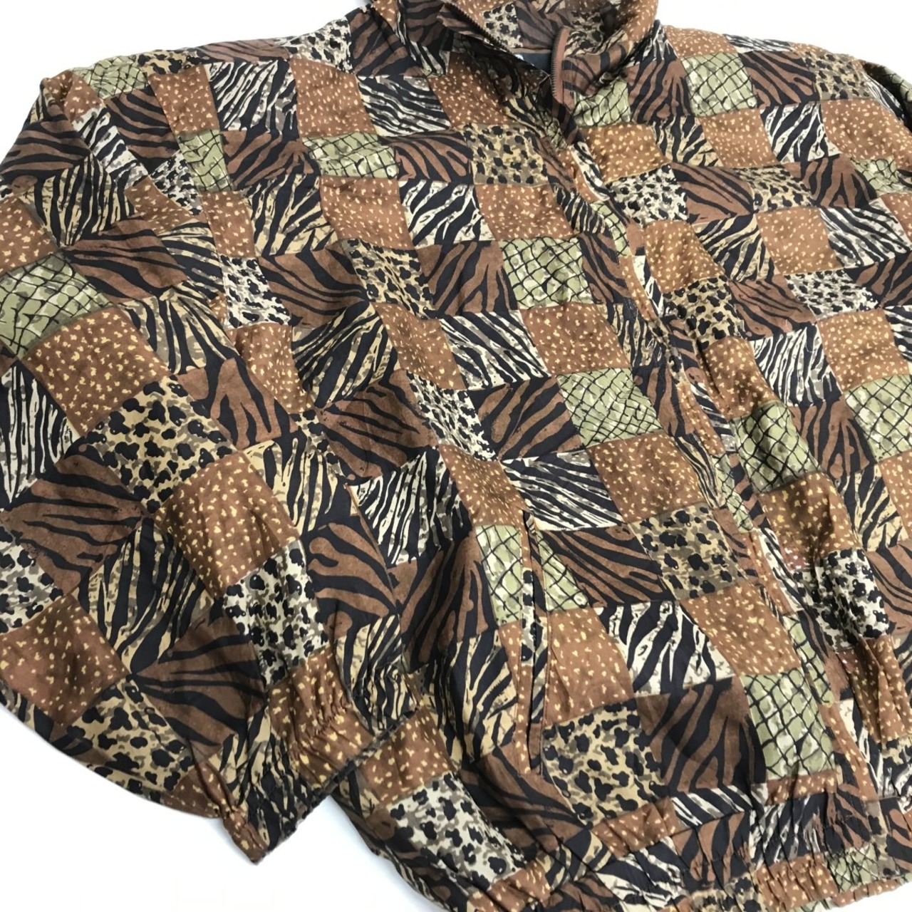 EVR 90年代 総柄 アニマル柄 シルク ジャンパー シルク ブルゾン シルク ジャケット XL 長袖