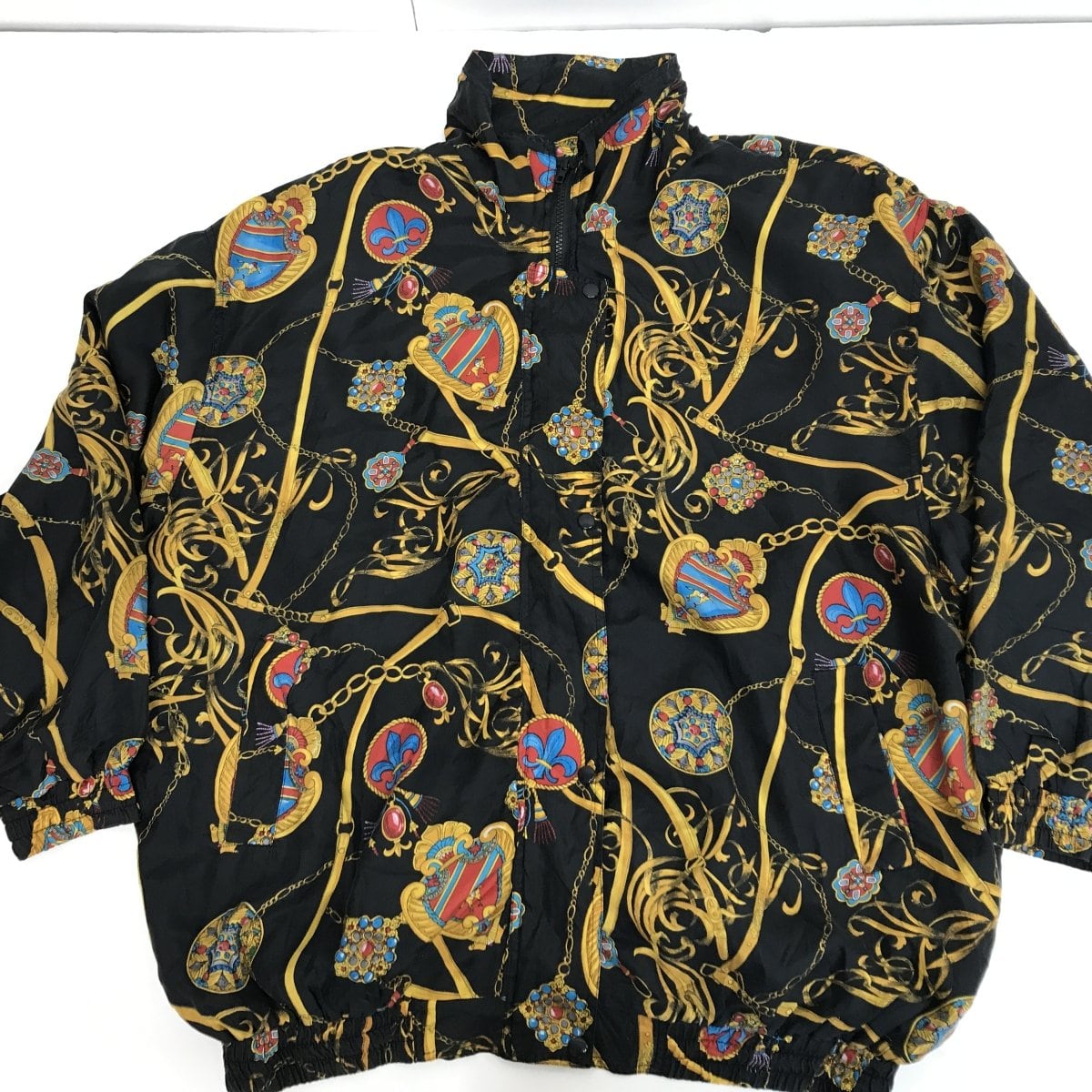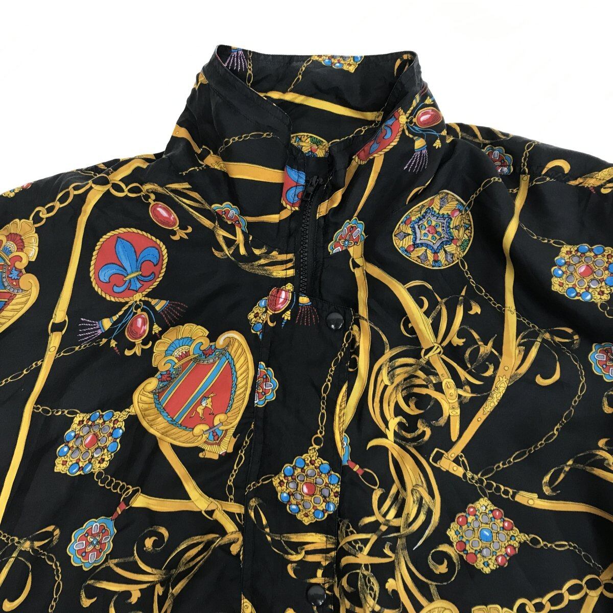 DETAILS SPORTSWEAR 80〜 90年代 総柄 スカーフ柄 シルク ジャンパー シルク ブルゾン シルク ジャケット L 長袖