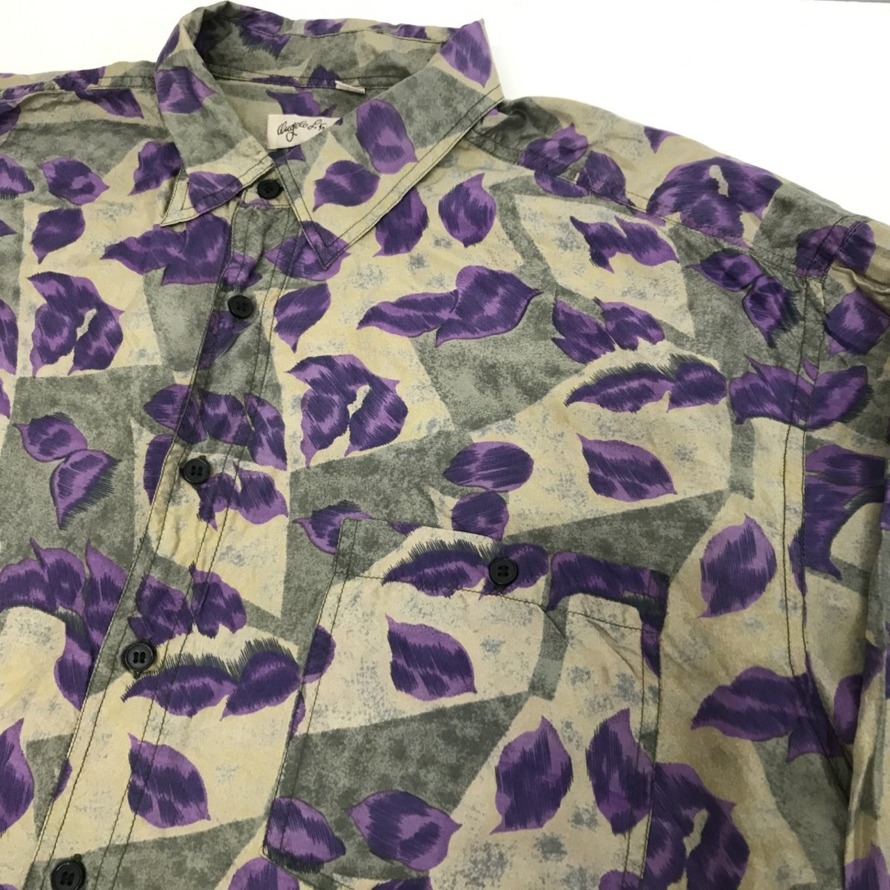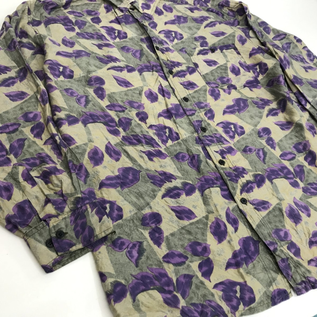 ANGELO LITRICO 90年代 総柄 リーフ柄 シルク シャツ ベージュ XL 長袖