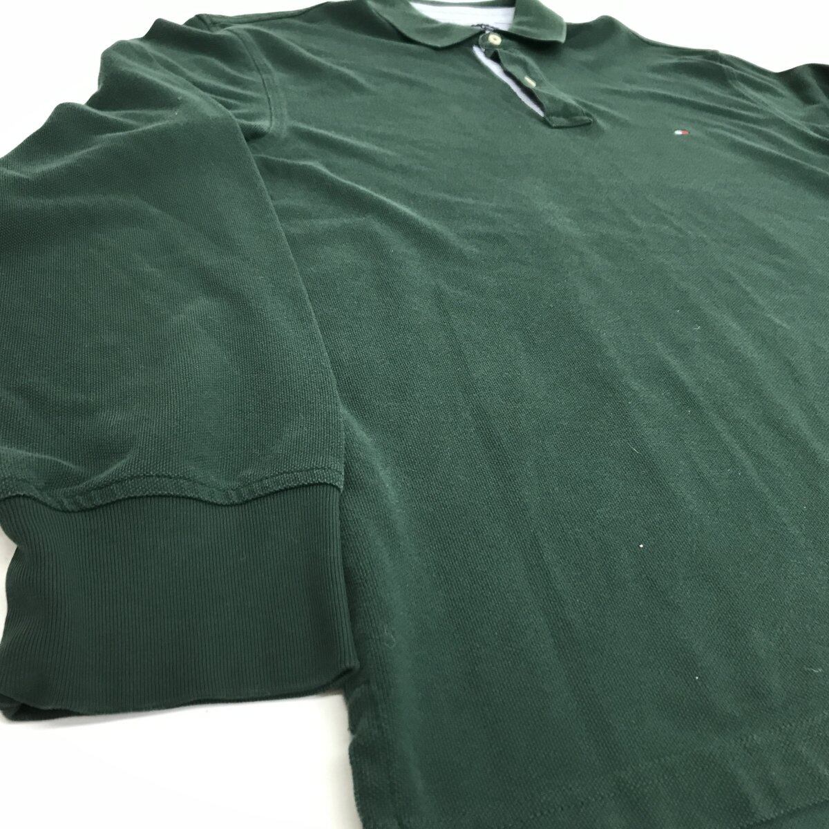 TOMMY HILFIGER トミーヒルフィガー 長袖 ポロシャツ ワンポイント ロゴ入りダークグリーン XL 長袖