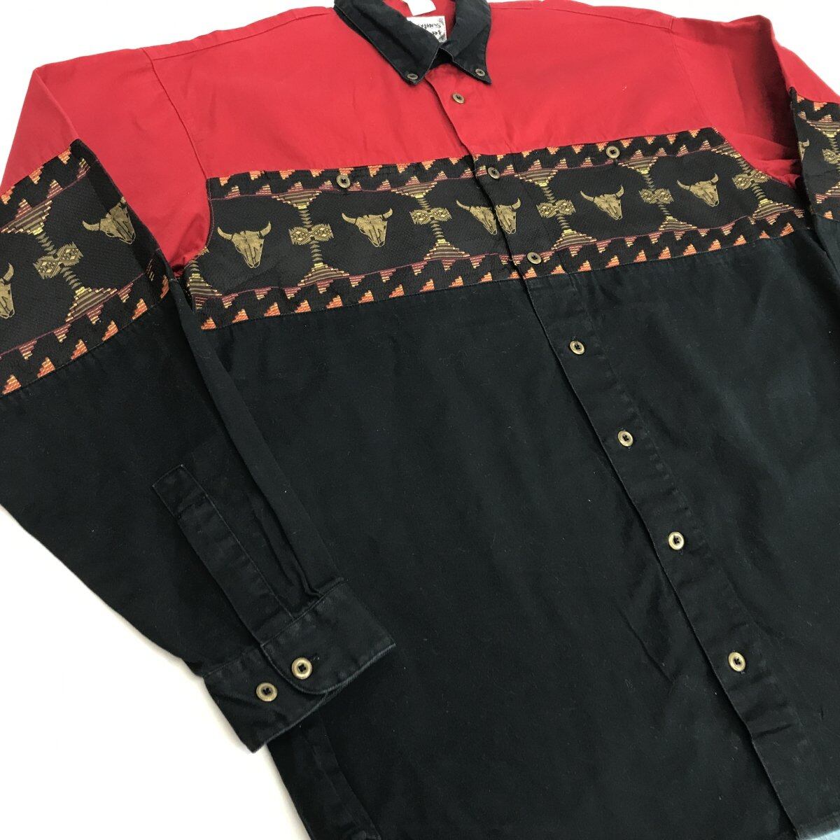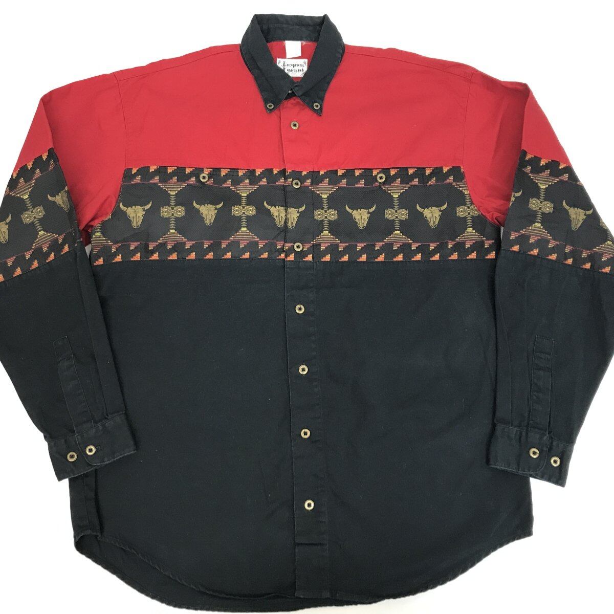 JACQUES LOFANT 90年代 切り替え ネイティブ 柄 生地 コットン ツイル シャツ レッド ブラック XL 長袖