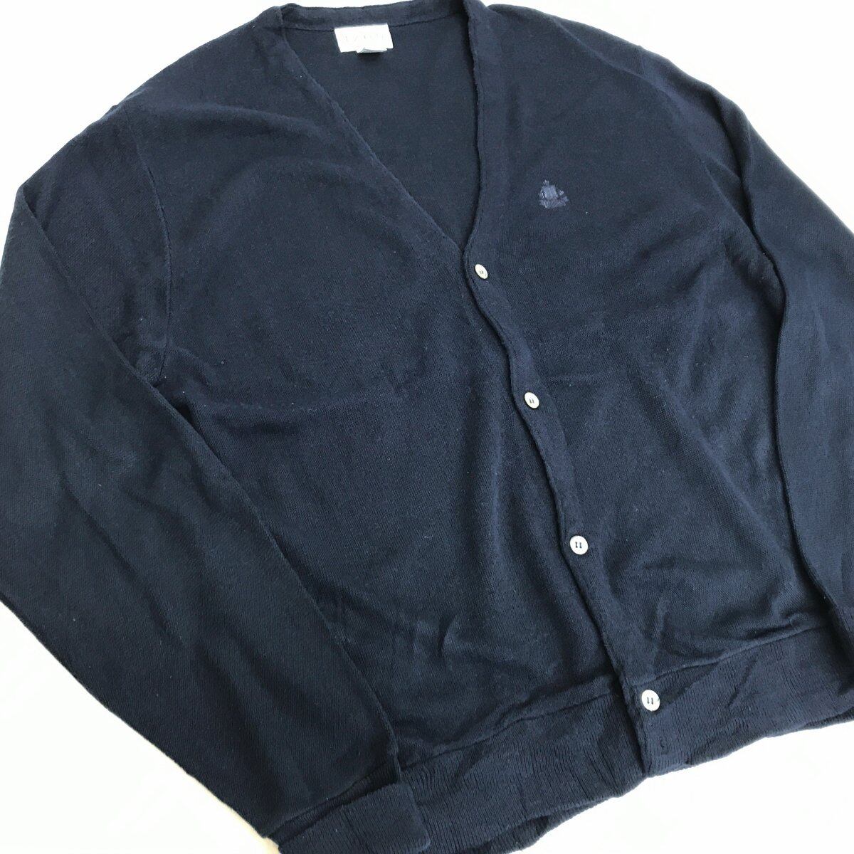 IZOD アイゾッド 90年代 USA製 カーディガン Vネック ワンポイントロゴ ダークネイビー XXL 以上 長袖