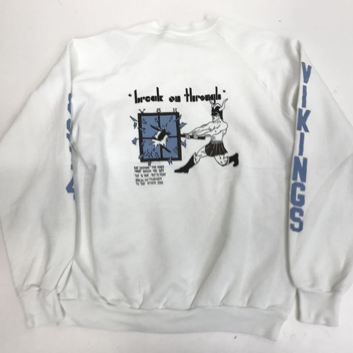 JERZEES ジャージーズ 90年代 USA製 VIKINGS バック プリント 袖 プリント入り ラグラン スウェット ホワイト XL 長袖