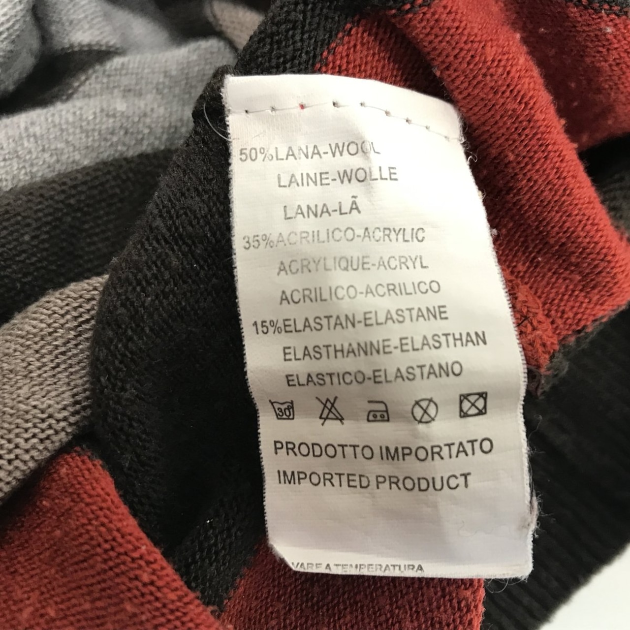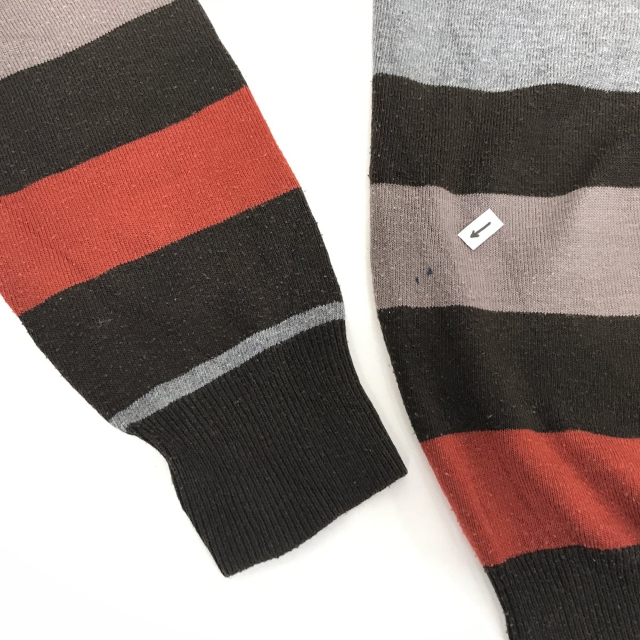 USED EURO系 クルーネック ウール混 ライト セーター マルチ ボーダー XL 長袖