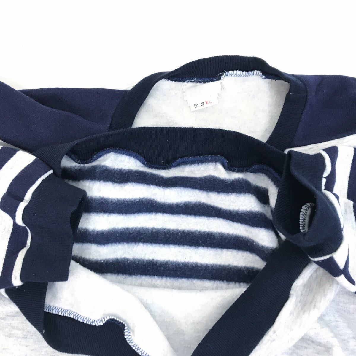 EURO VINTAGE 80〜 90年代 切り替え ボーダー マリン柄 セットイン スウェット グレー ネイビー L 長袖