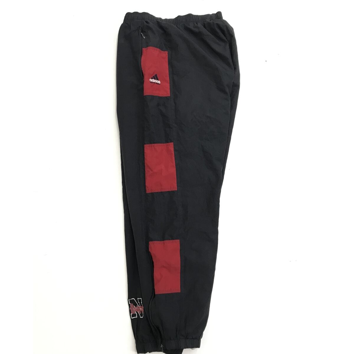 ADIDAS アディダス 90年代 パフォーマンスロゴ ワンポイント 刺繍入り 万国旗タグ サイドライン ポリエステルパンツ トレーニングパンツ ブラック XXL