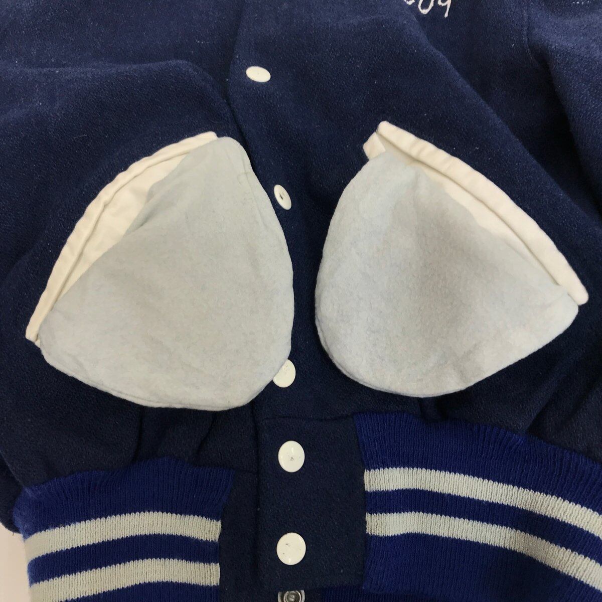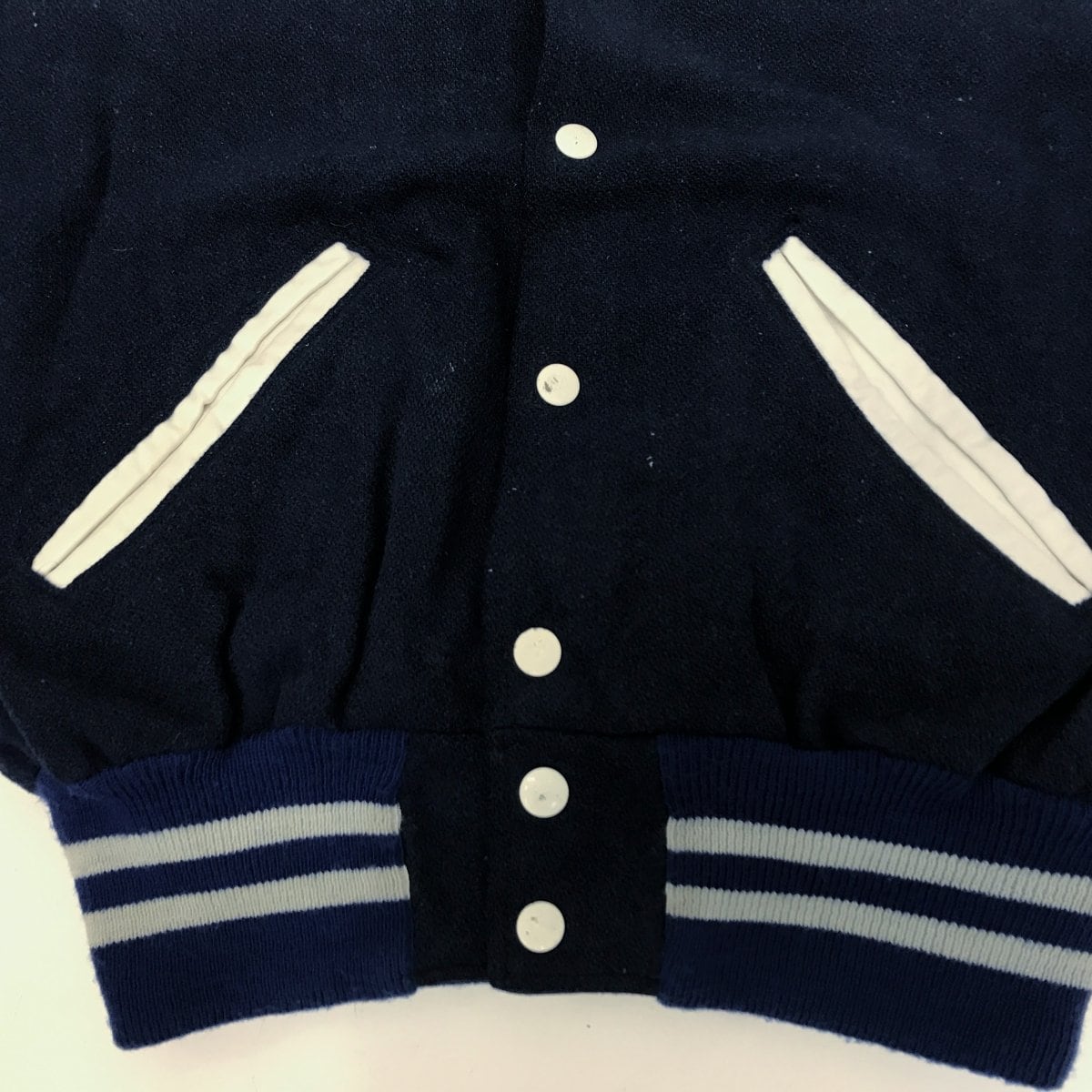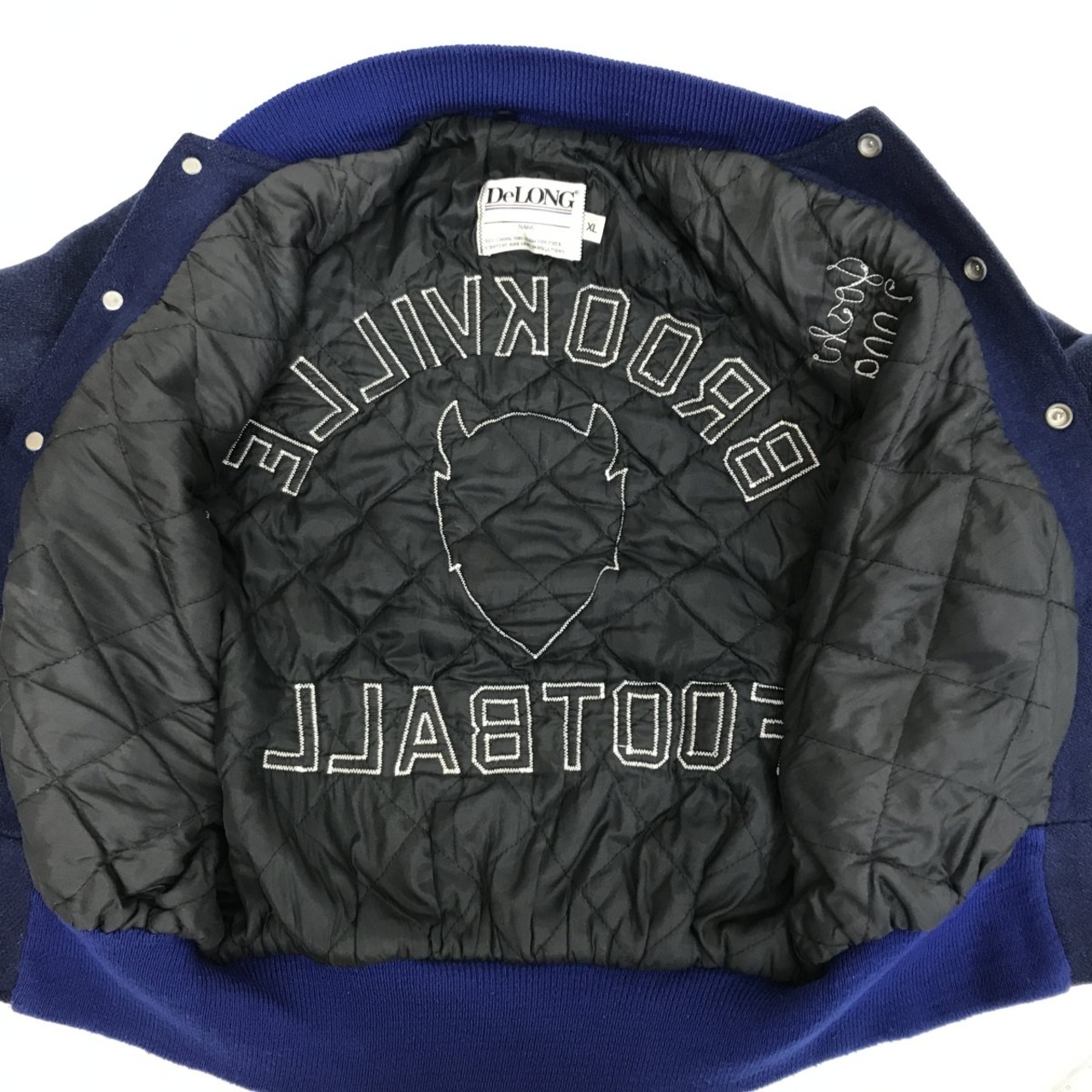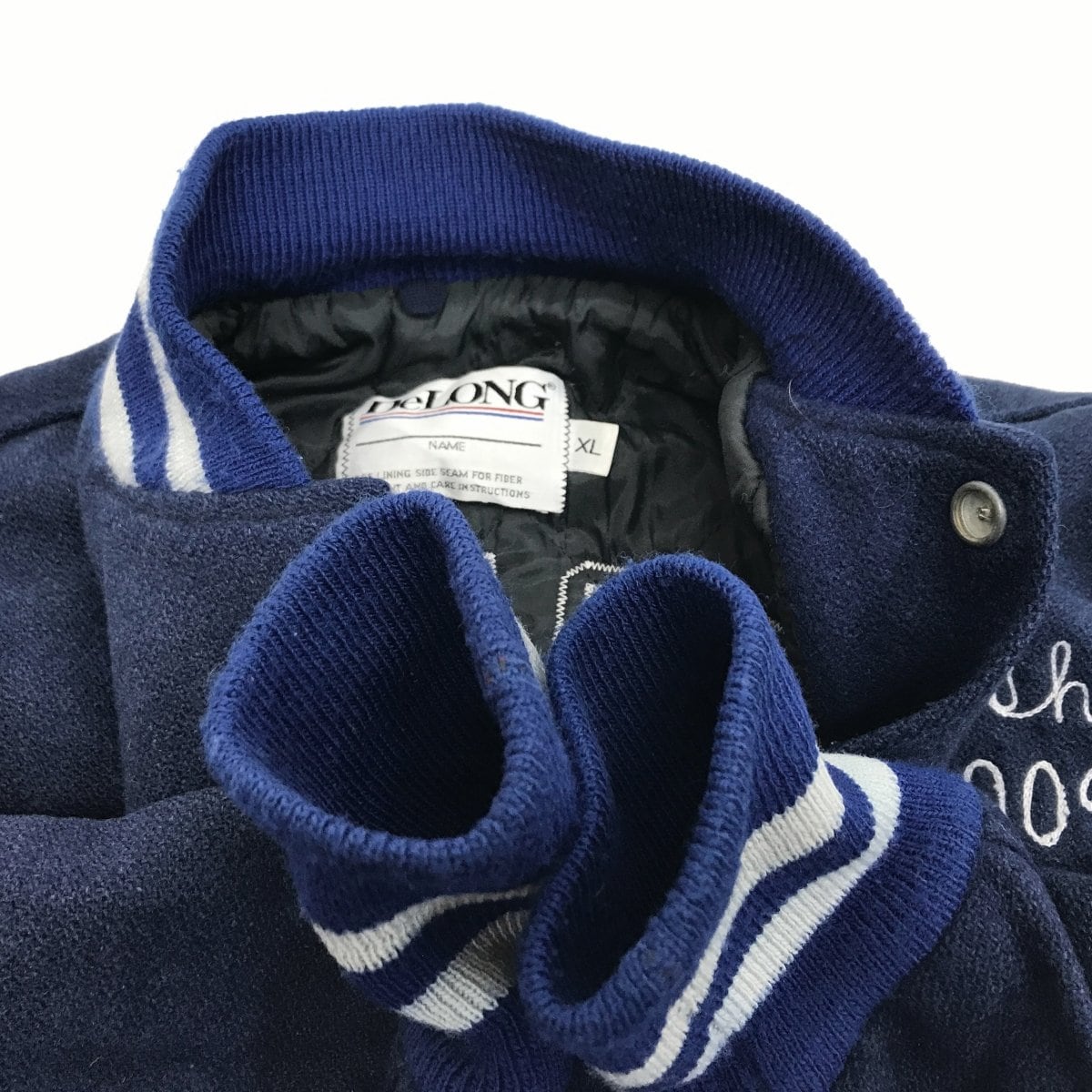DeLONG デロング スタジャン 90〜 00年代 ウールメルトン DEVIL パッチ 裏 中綿 キルト スタジャン アワードジャケット ネイビーブルー M 長袖