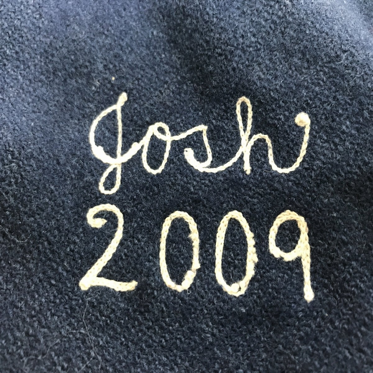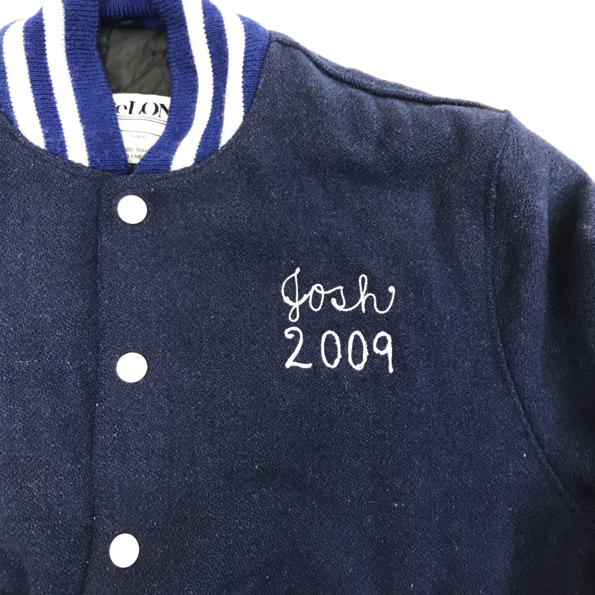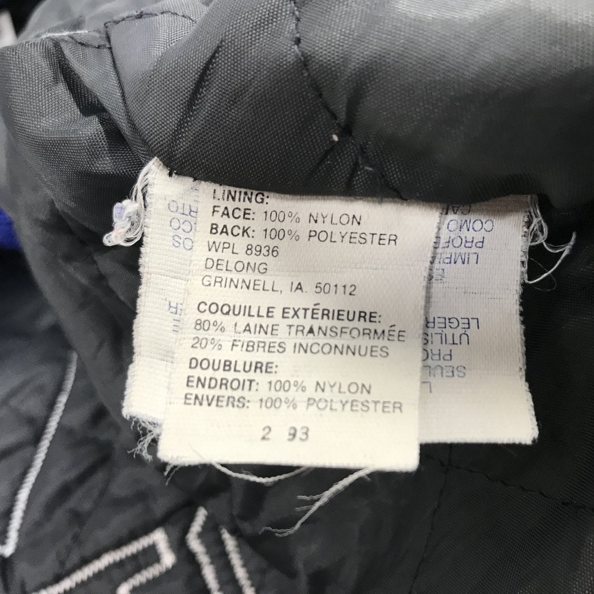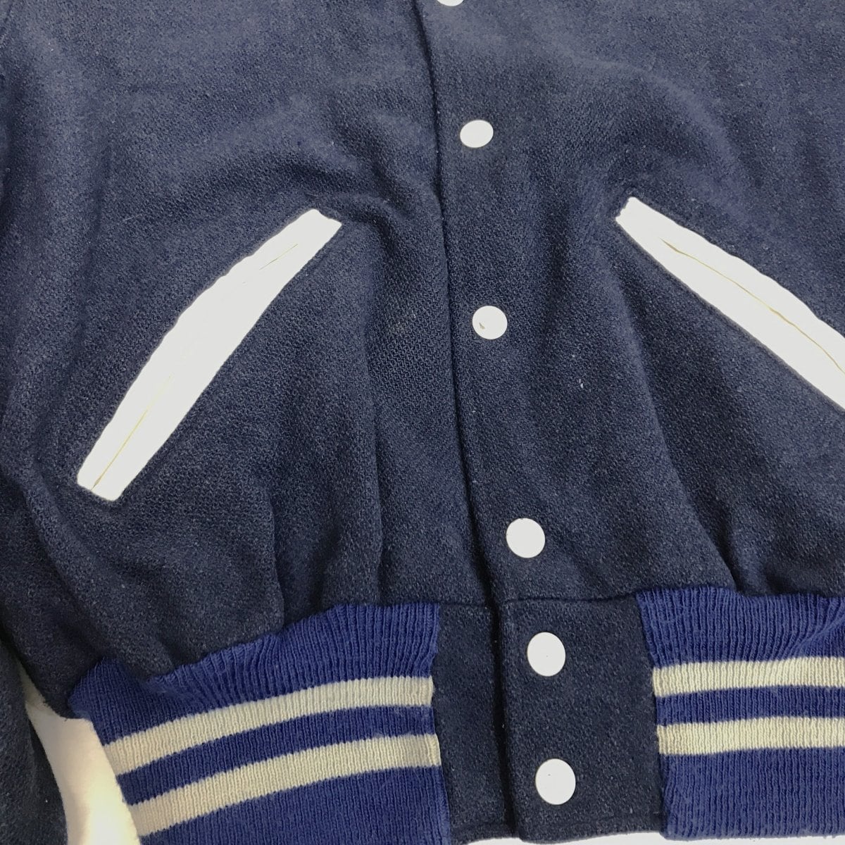 DeLONG デロング スタジャン 90〜 00年代 ウールメルトン DEVIL パッチ 裏 中綿 キルト スタジャン アワードジャケット ネイビーブルー M 長袖