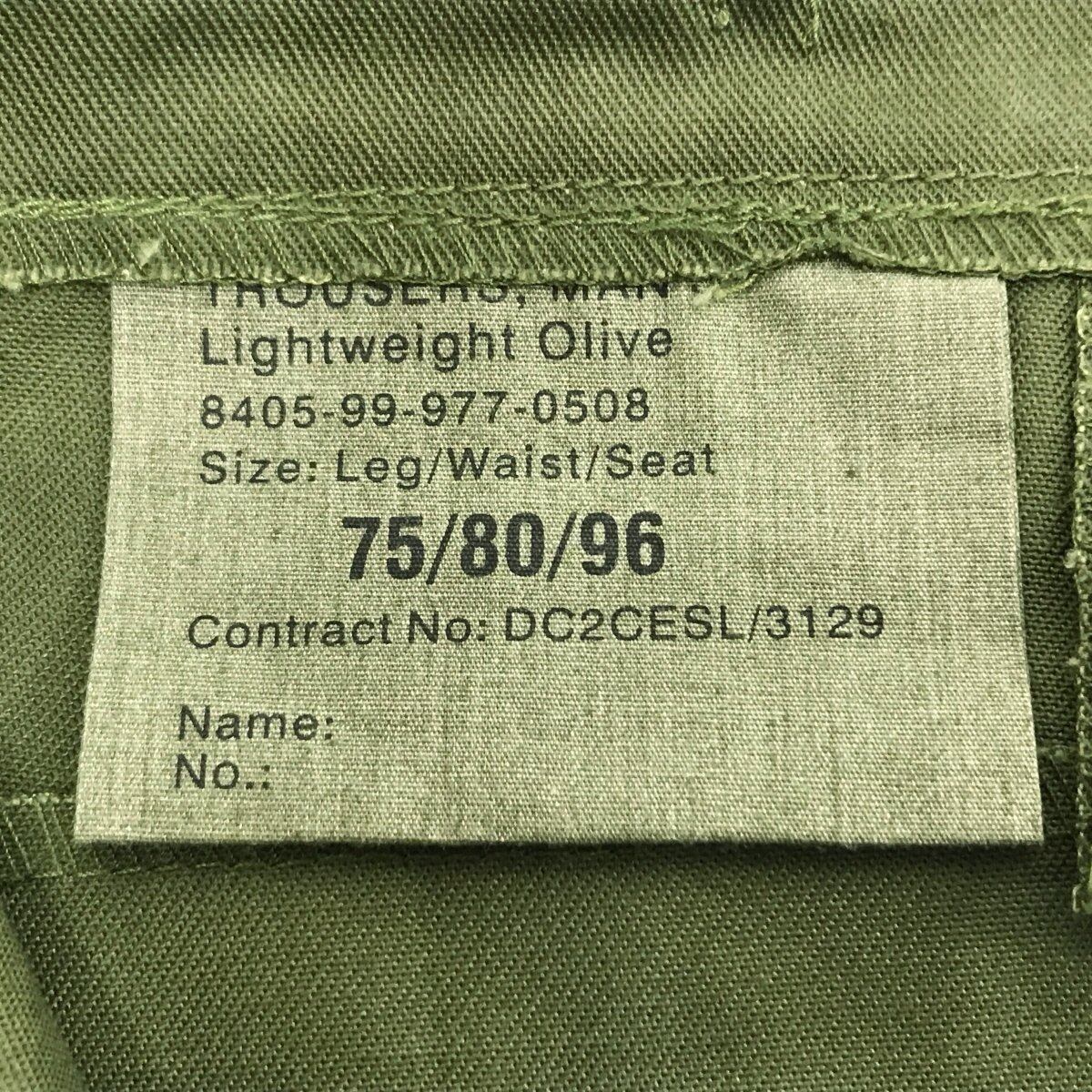 BRITISH ARMY イギリス軍 LIGHT WEIGHT OLIVE ファティーグ パンツ サイド カーゴポケット ベイカー パンツ 4ポケット グリーン W31 L29 相当